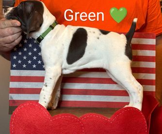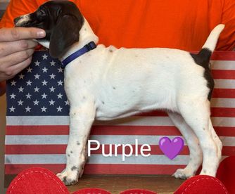 Our puppies include white and liver, liver roan, and liver and white. Colors will vary depending on the parent dogs.