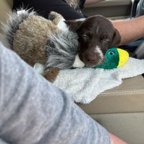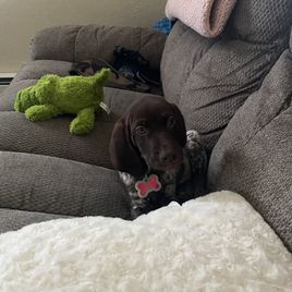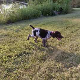 David and Beth were very good with communicating with us about Millie. You can tell they really care about their GSP's. They have a very nice set up for breeding and are not just a puppy mill. My daughter and I had a great experience with both Good Dog and David and Beth. They sent us home with a goodie bag and some starter food. We are very happy with Millie. She adjusted well to our house and our other dog that we ended up fostering for a friend while they move. Millie has been an absolutely joyful addition to our household and when we decide to get another GSP, we will definitely be going with Big Daves again.