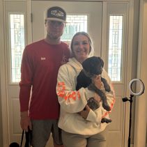 There’s a never ending list of positive things I could say about David and Beth. Not only were they so so easy to work with, but also quick with replies. Any question, at anytime, was always answered. I knew they would be so good to work with when I was offered a Facetime right away, seeing as I live states away. With that being said, they also were so accommodating to what worked for us and offered us multiple ways of picking up our puppy. I want to add, their spot of work is so clean, organized and a perfect environment for this breed. We were offered to meet both parents, which is a great way of seeing what your puppy may look and act like in the future. We were also sent home with a care package, which included all papers and vetting up to date. Absolutely zero complaints about BDBD!!!! Here is our puppy, Ruger.