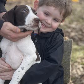 David and Beth are fantastic breeders and were so helpful and accommodating throughout the process of getting a dog for my family. They were very quick to respond to any questions I had and are amazingly kind. They take fantastic care of their dogs, providing them with lots of space, training, and play. They provide a wealth of information on their puppies, including food, vet records, AKC papers, and Volhard test results, and were willing to share pictures and videos of the puppies we were interested in. We chose a 10-week-old puppy named Pink (now Luna) and she is healthy, happy, smart, loving, and extremely trainable. David and Beth offered to host my kids and I during the adoption process, shared dinner with us, let my kids fish on their property, and showed my boys and I how their dogs are cared for and provided a hunting demo. I was truly touched by their generosity and would highly recommend them should you be looking for a German Shorthaired Pointer.