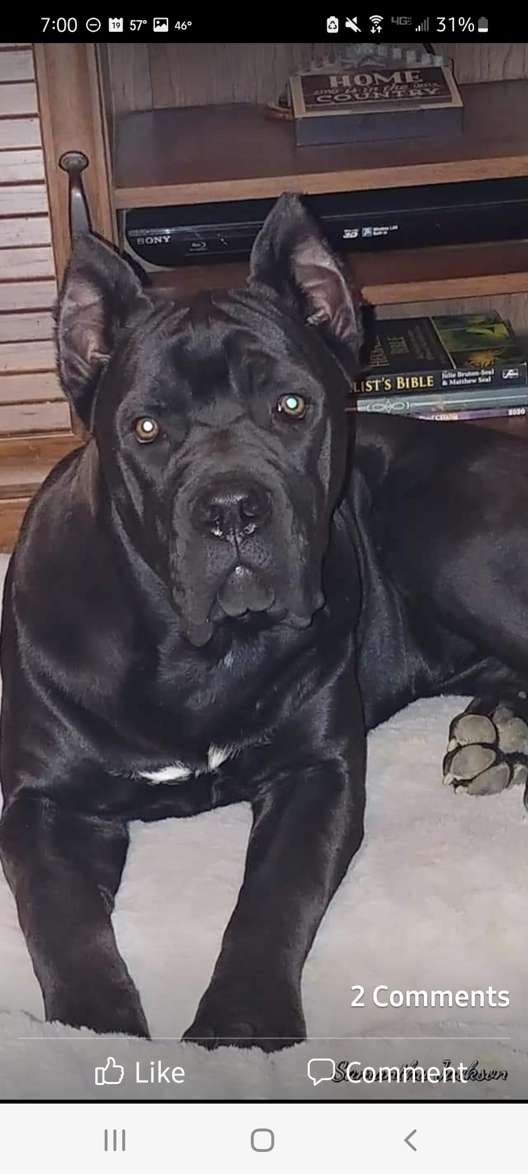 Crowley is a male Cane Corso. Carefully selected as a great representative of his breed, Samantha decided to make him part of their program. Samantha has passed Good Dog’s screening process, which involved a review of their breeding practices, environment, and the mental and physical health of their dogs.