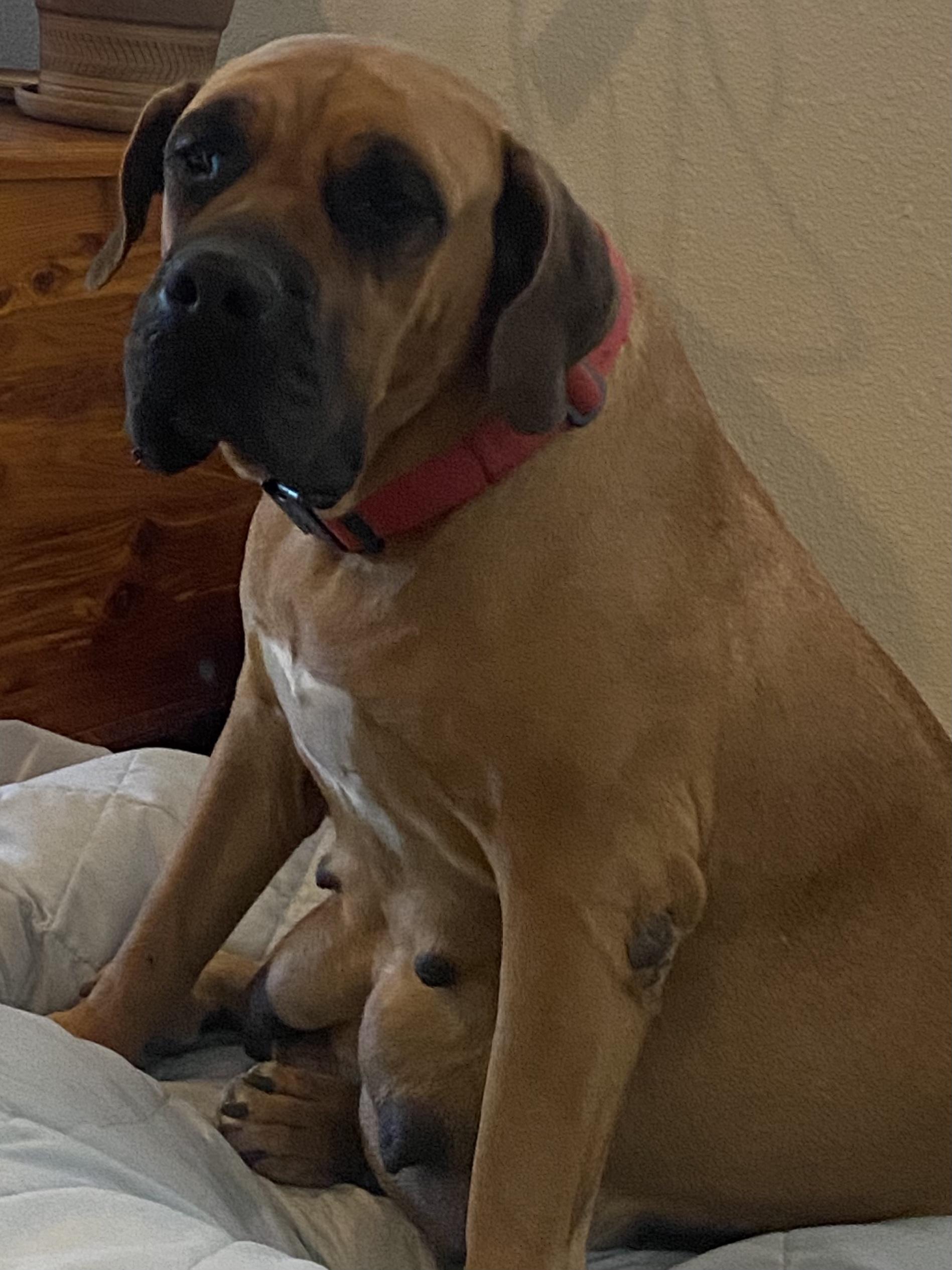 Sienna is a female Boerboel. Carefully selected as a great representative of her breed, Barbara decided to make her part of their program. Barbara has passed Good Dog’s screening process, which involved a review of their breeding practices, environment, and the mental and physical health of their dogs.