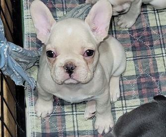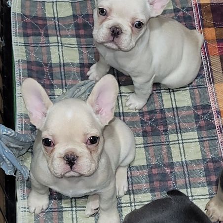Harper & Trigger's daughters are growing up! Their ears are now standing and they are looking like the sweet little frenchies that they are! They love attention! Lilly and Daisy run to the gate when you enter the room! They melt my heart!