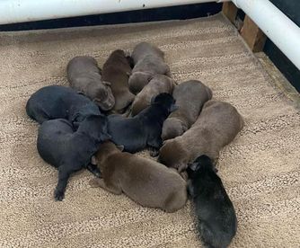 Labrador Retriever puppies include black, chocolate, and yellow. Colors will vary depending on the parent dogs.