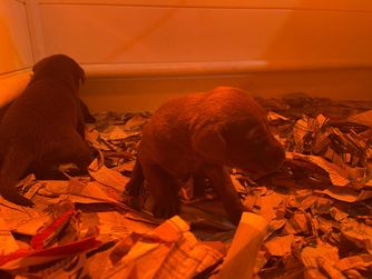 Gemmy is an incredibly pedigreed female. She is everything you want in the field, and very obedient. She is hard runner always willing to work. She is great with other dogs and kids. Gemmy is about 50-52 pounds and has all of her health clearances.