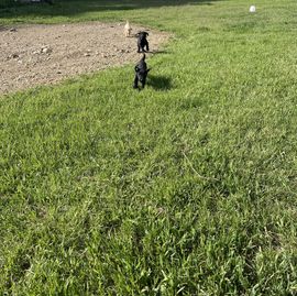 Freddy is going very well with our family. He is probably the smartest dog I have had. He is being introduced to walks in the fields and ditches. Very birdy and like to watch Geese flying south for winter. The potting training is a challenge but coming along good. Playing a lot of fetch and 20 minto 30 min walks in the field behind our house. We live in the country so he has a lot of room to run. He goes every place with me and is starting to enjoy going with me in the truck. Big Sioux Retrievers are the place to get a good dog and I give them 100 Stars, Thank You Robert
