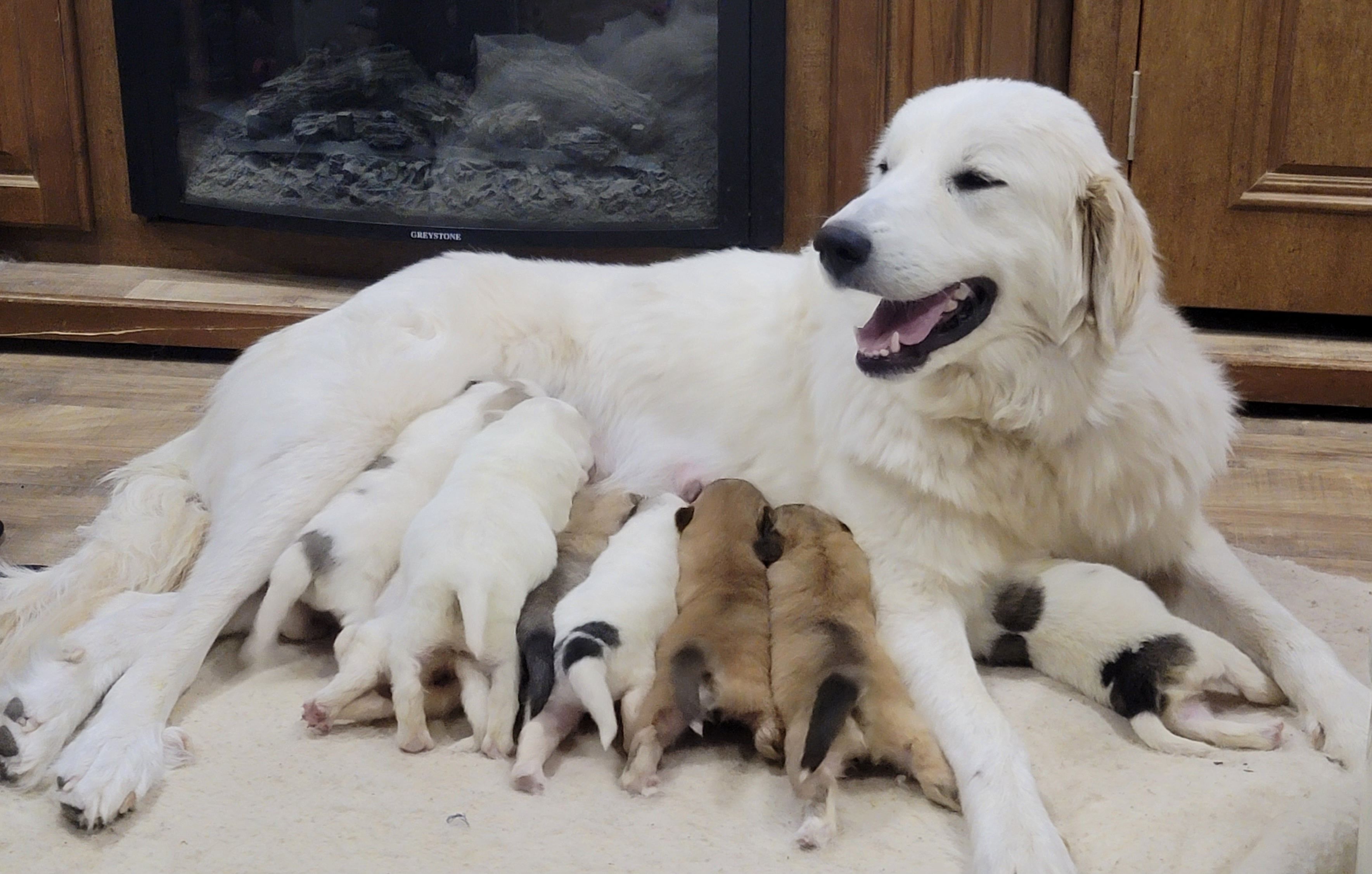 We work with the breed founder, as well as other breeders, to ensure that we are breeding forward healthy dogs with the desired traits of the Colorado Mountain Dog. Our dogs are raised and loved by our whole family and are exposed daily to ducks, kittens, goats, and other dogs.