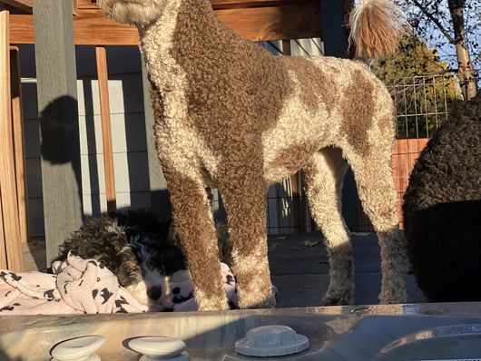 Spur is a male Poodle. Carefully selected as a great representative of his breed, Toni decided to make him part of their program. Toni has passed Good Dog’s screening process, which involved a review of their breeding practices, environment, and the mental and physical health of their dogs.