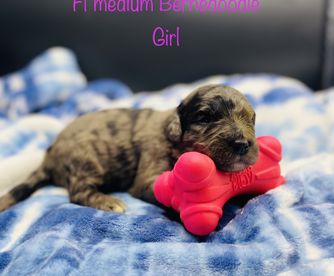 Harlow is a female Bernedoodle. Carefully selected as a great representative of her breed, Toni decided to make her part of their program. Toni has passed Good Dog’s screening process, which involved a review of their breeding practices, environment, and the mental and physical health of their dogs.