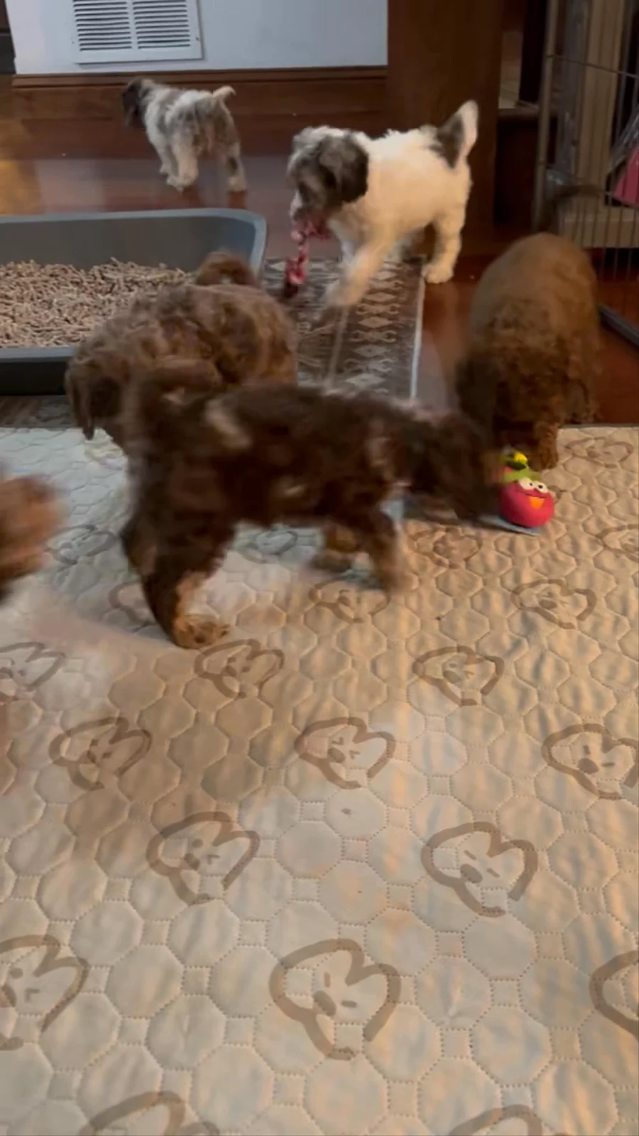 Play sessions in the living room! Featuring Maple x Siriys F2b medium cockapoos. ……. #maplexsiriy
