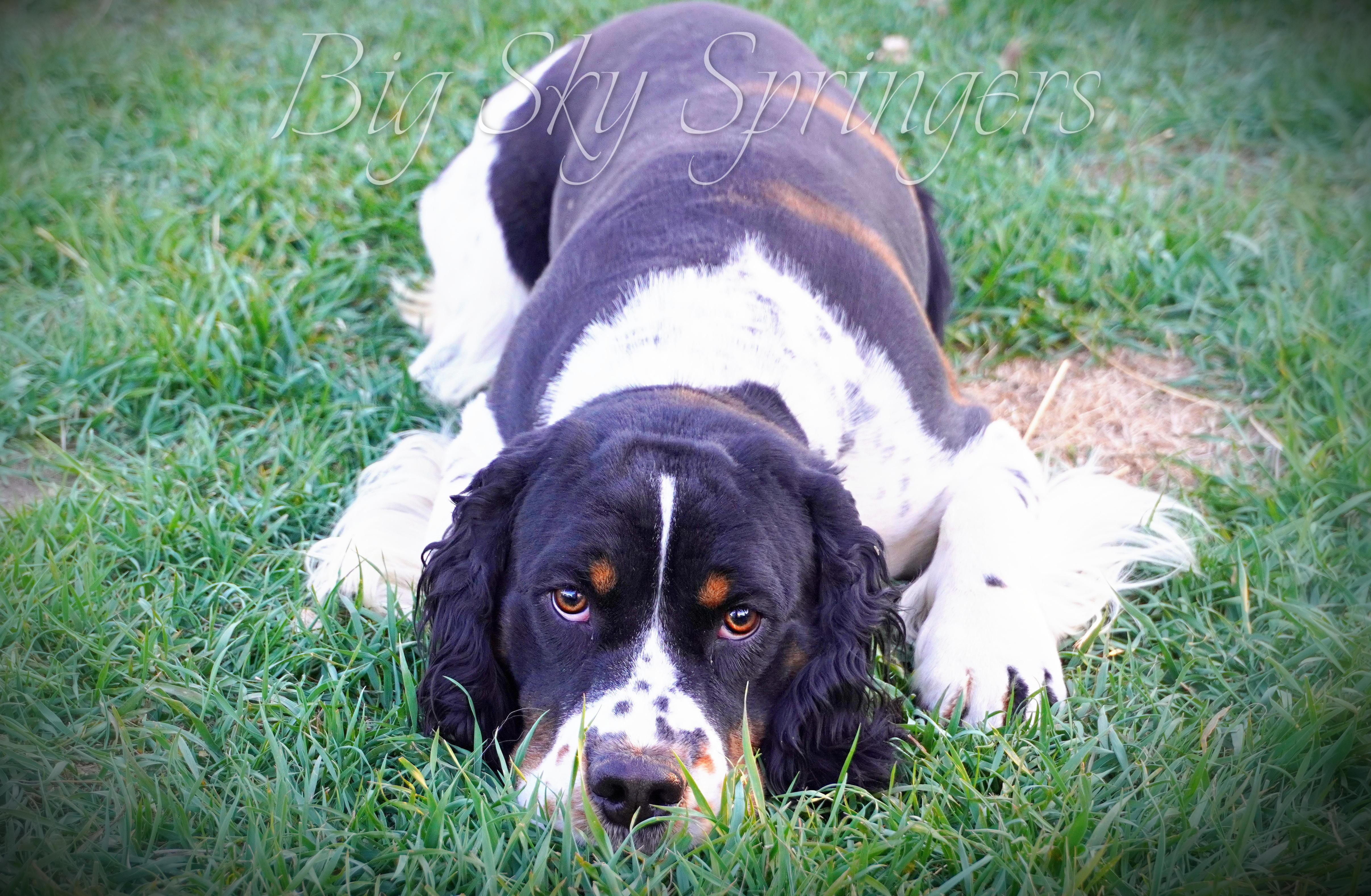 Valley is a born and raised Big Sky Springer. Her sire was Luke, our European import. Her dam is Prairie. Her lines include primarily European lines with a touch of Field/American lines. Valley is heavier built but still petite. She is the ultimate velcro dog, attached at the hip and is very loyal. She loves water, is very comical and loves being out and about with us.