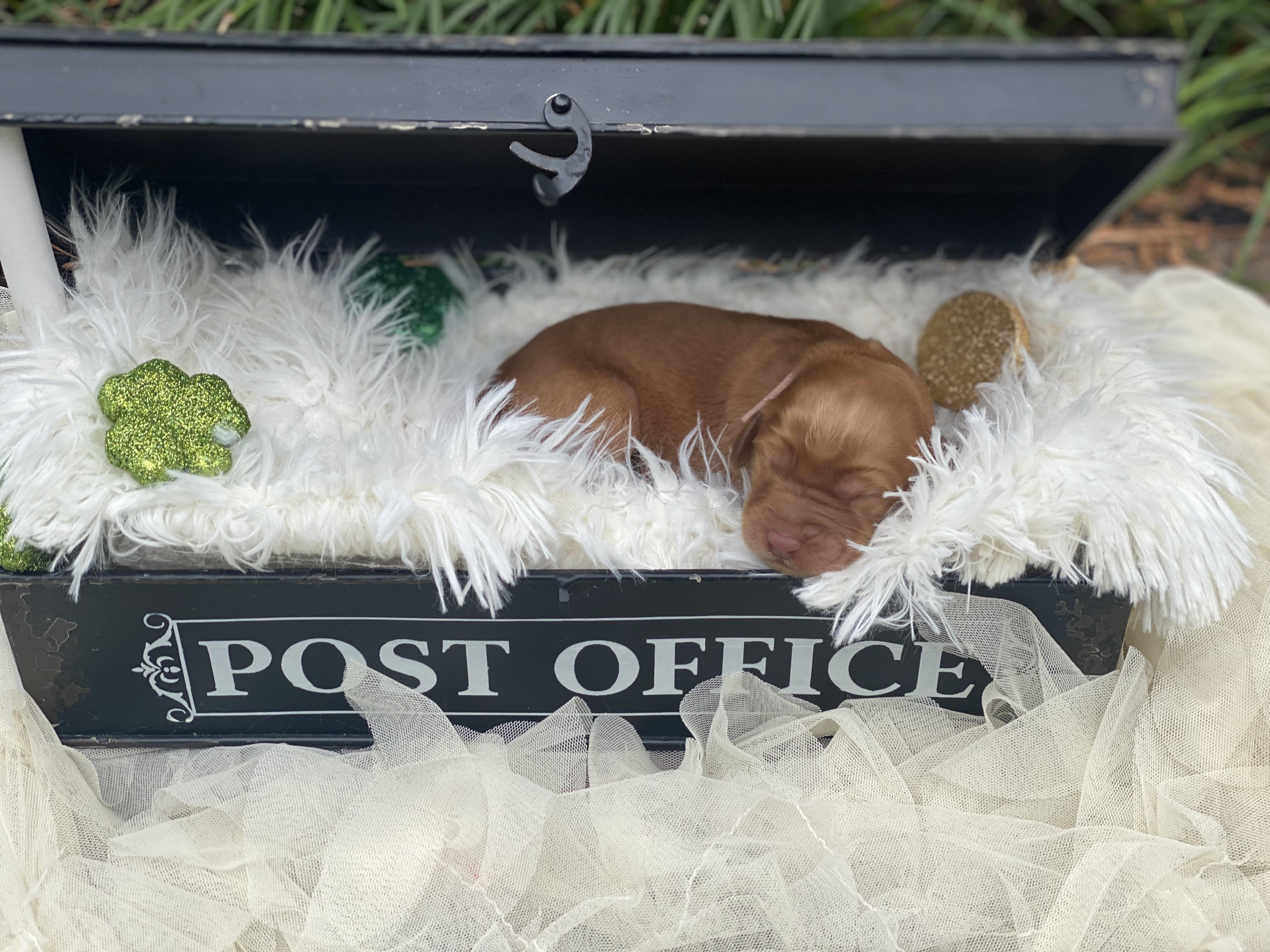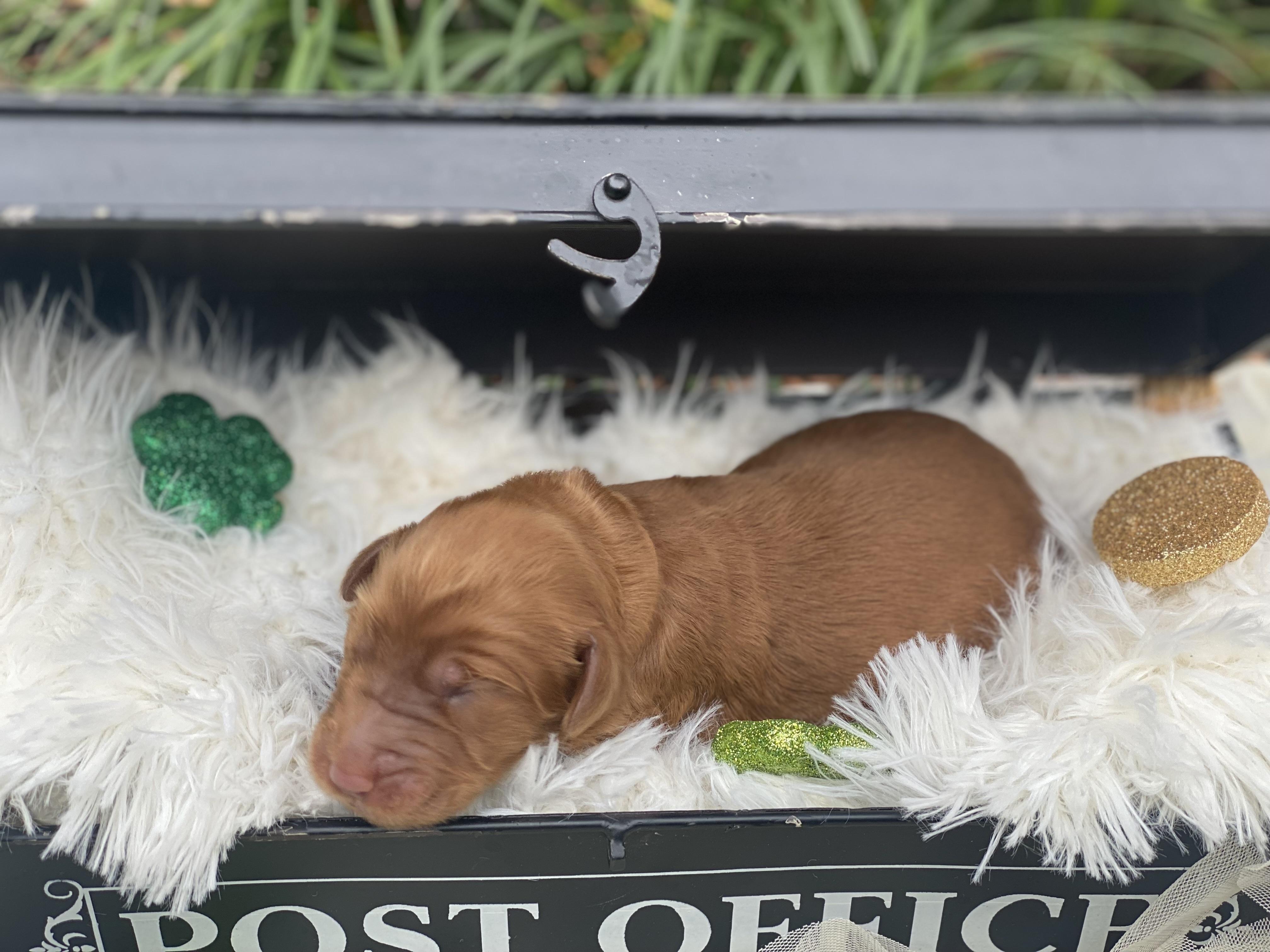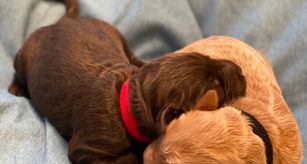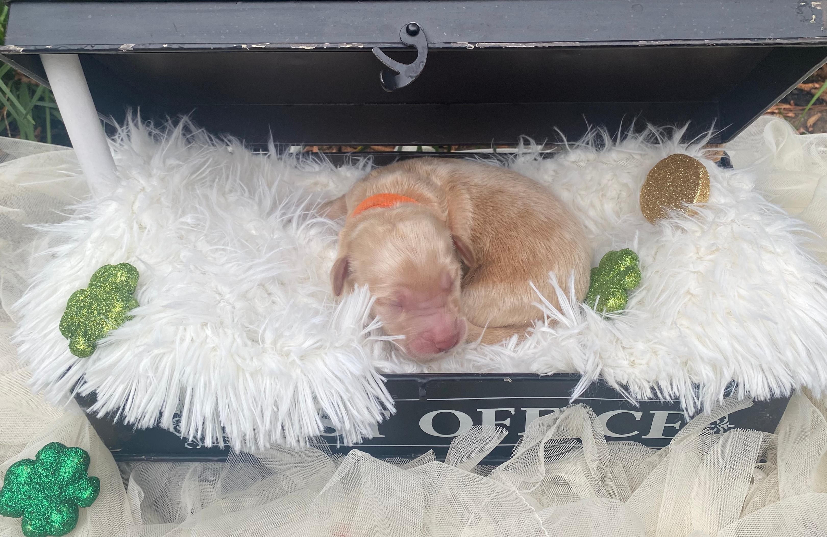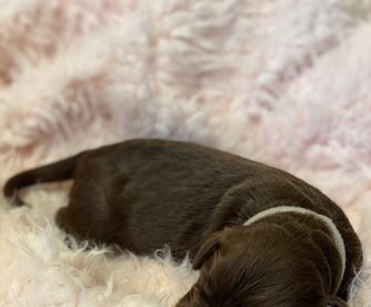 Our puppies include caramel cream, caramel, caramel red, red, apricot, chocolate, and parchment. Colors will vary depending on the parent dogs.