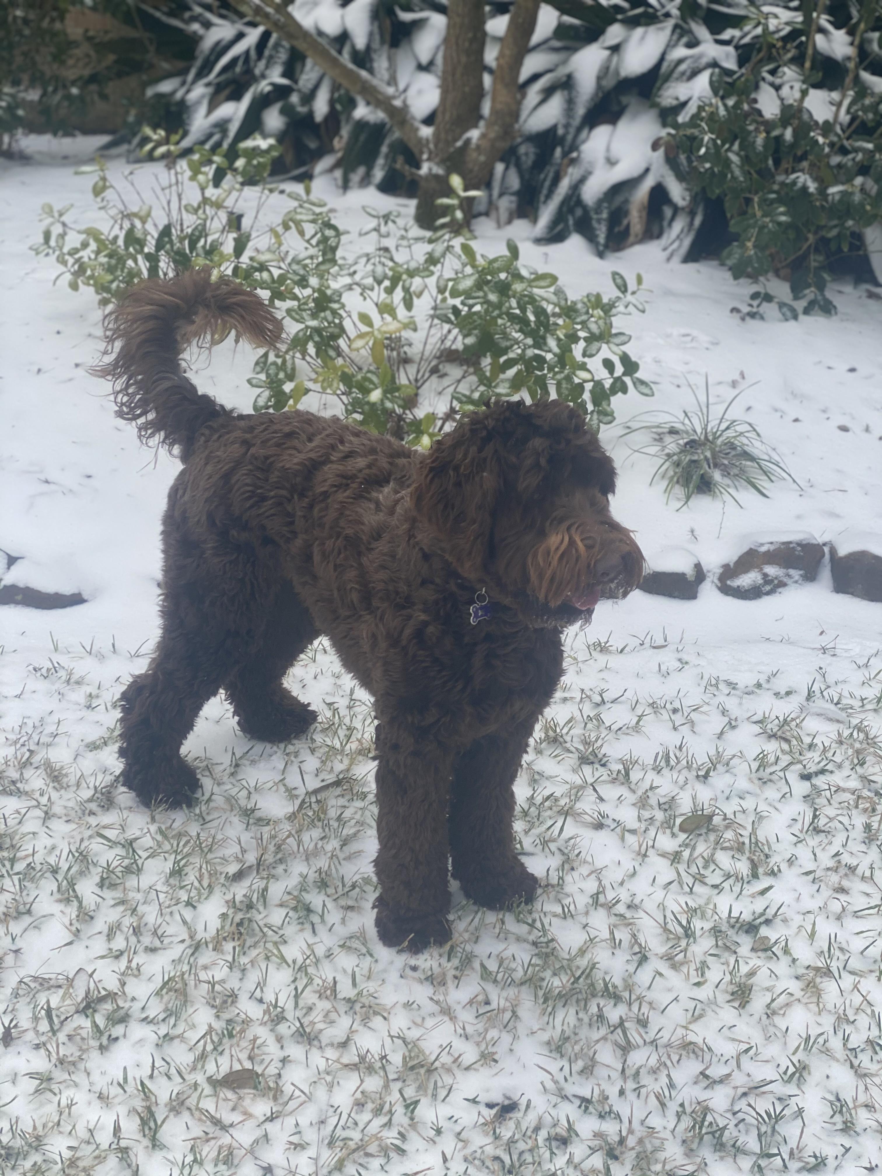 Phoebe is a female Australian Labradoodle. Carefully selected as a great representative of her breed, Mary Beth decided to make her part of their program. Mary Beth has passed Good Dog’s screening process, which involved a review of their breeding practices, environment, and the mental and physical health of their dogs.