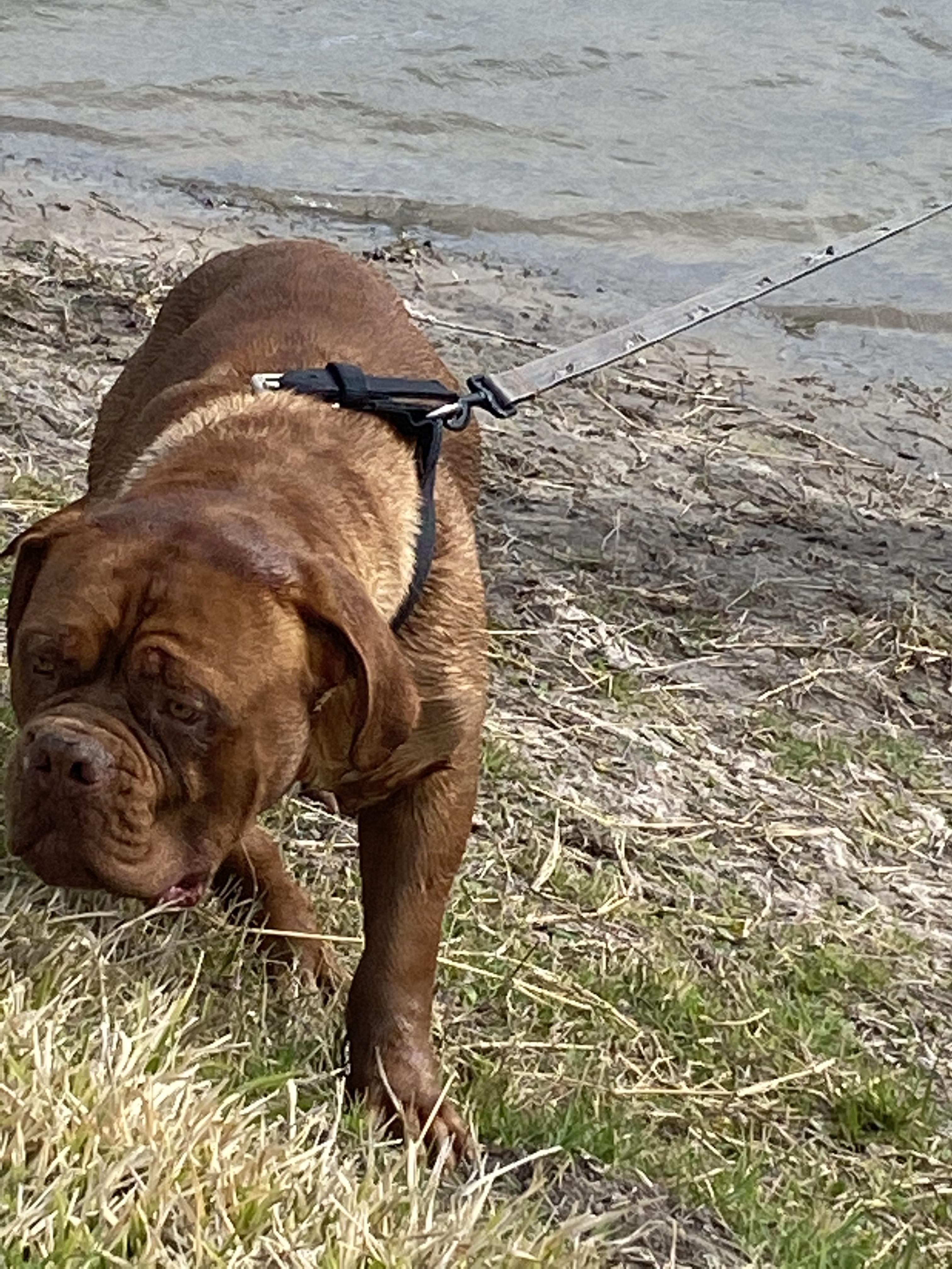 Harley is a female Dogue de Bordeaux. Carefully selected as a great representative of her breed, Roger decided to make her part of their program. Roger has passed Good Dog’s screening process, which involved a review of their breeding practices, environment, and the mental and physical health of their dogs.