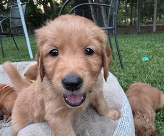 My family had been thinking about getting a golden retriever for almost a year when one day we decided to go for it. We found Theresa online with her beautiful golden puppies and immediately knew which one we wanted. We were able to meet almost right away with our puppy at Bigfoot Goldens along with other families and had an amazing day doing so. Theresa and her husband are absolutely charming and great dog owners. We are so very impressed with the care taken of these beautiful little puppy lives and absolutely love our new little girl Michelle. She is now 13 weeks old. Since bringing her home 3 weeks ago, she has very quickly learned to go potty outside, sit, play fetch and drop the ball. She is so eager to please us and always looking for a good girl. She has settled in so easily and it genuinely feels like she was always meant to be with us. I can't thank Theresa enough for making it such a smooth process for us. So professional and kind. Even going the extra mile to set up a surprise for my little girl. It was so appreciated. We definitely see another golden retriever in our future.