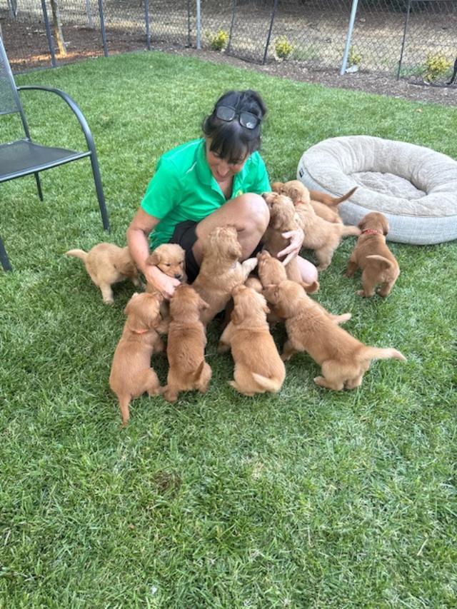 I'm Theresa P., the breeder behind Bigfoot Goldens - AKC Registered Dark Red located in Aumsville, OR. It’s important to us that we continue to improve our program and share our knowledge with our buyer families. We want to better the breed through thorough health testing and selective breeding decisions. We are members of the Golden Retriever Club of America and also Breeders of Merit with the AKC.