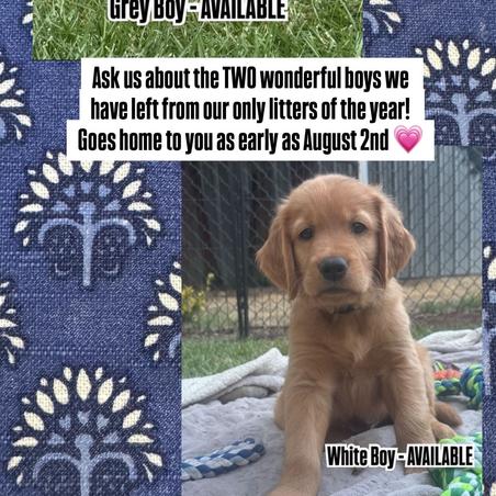 We had such a wonderful experience with Theresa of Bigfoot Goldens. She raises beautiful dogs in a clean, safe, and loving environment, and it was clear from the beginning how much care goes into every puppy. We selected our sweet boy (Nelson) from Ransome and Luna’s litter, and from day one Theresa provided incredible support and all the resources we needed to feel prepared. She kept us updated with frequent pictures and videos, which made the wait so exciting. When it came time to choose Nelson, she let us spend almost two hours meeting and bonding with him before making our decision—never rushing us and answering all of our questions. Theresa even went above and beyond by keeping Nelson a little longer for us as we were traveling internationally on his original pickup date. During that extra time, she thoughtfully started him on crate training since she knew it was one of our goals, which made the transition home so much smoother. We are beyond grateful for the care, patience, and dedication Theresa showed throughout this process. Nelson is such a happy, healthy, and well-adjusted puppy, and it’s all thanks to the amazing start he got with her. He had a perfect first visit to the vet, extremely healthy! We couldn’t recommend Bigfoot Goldens more highly!