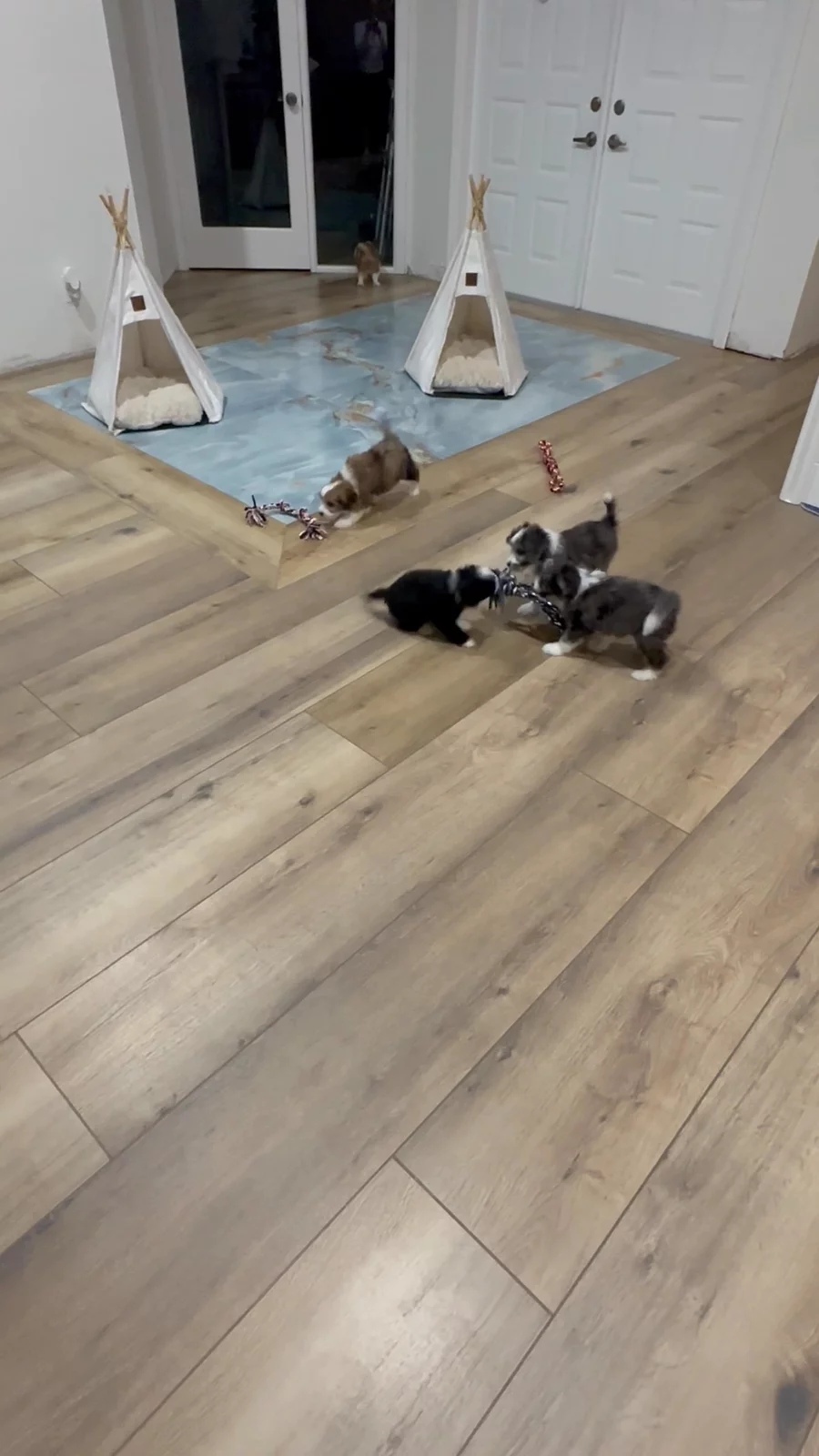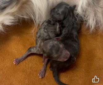 One Blue Merle female, and one red Merle male have been reserved. We have three Blue Merle males and one black-and-white female available.🥰🐾