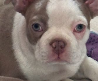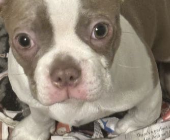 Chloe is a female Boston Terrier. Carefully selected as a great representative of her breed, William decided to make her part of their program. William has passed Good Dog’s screening process, which involved a review of their breeding practices, environment, and the mental and physical health of their dogs.