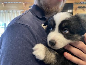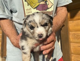 Our puppies include blue merle and black tri. Colors will vary depending on the parent dogs.