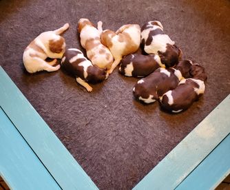 “Puppies come with a health guarantee, AKC registration, first round of shots, deworming, micro chipped and a health certificate. We also offer free training help to our puppy people. During the summer months we run training classes for our puppy owners from beginner level to advance training with birds for the hunters. We are a Hobby Breeder. All of our breeding stock have titles and have passed health clearances. We don't take deposits until after the pups are born and you are offered a puppy. Once we start doing puppy testing starting at 5 weeks. We keep the puppy buyers informed on how they are developing. Based on over 30 years of experience breeding. We work to match you with a pup that will meet your needs. If it doesn't look like it will work out. We offer you your deposit back or move you to the next litter. It's your choice. A quite pup in a loud household or a very active pup in a quite household is not a good match.”