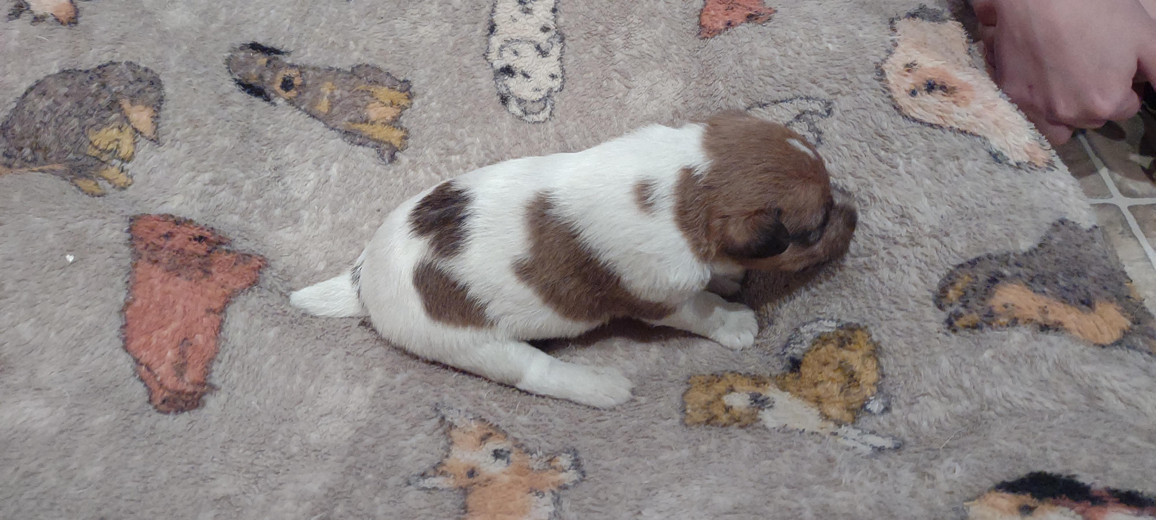 Sheena is a female Wire Fox Terrier. Carefully selected as a great representative of her breed, Bruce decided to make her part of their program. Bruce has passed Good Dog’s screening process, which involved a review of their breeding practices, environment, and the mental and physical health of their dogs.