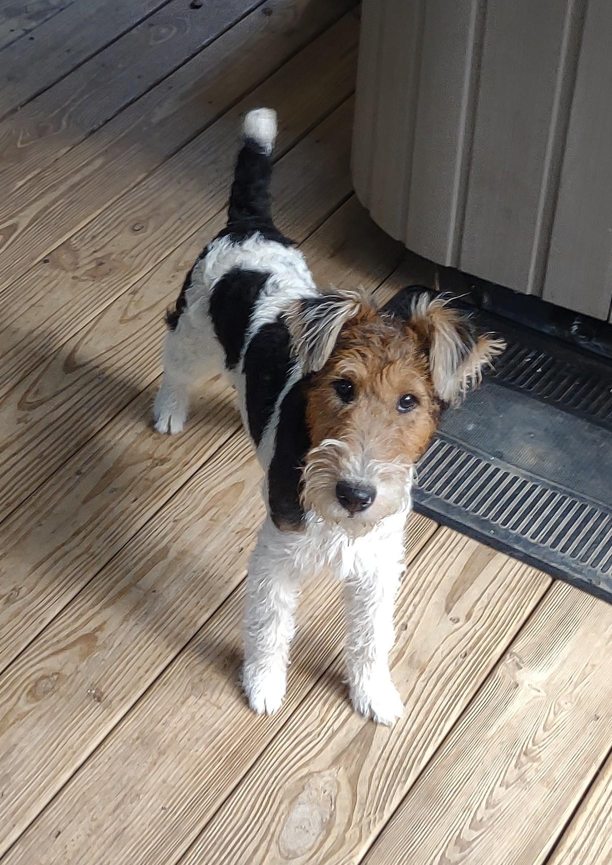 Hazel is a female Wire Fox Terrier. Carefully selected as a great representative of her breed, Bruce decided to make her part of their program. Bruce has passed Good Dog’s screening process, which involved a review of their breeding practices, environment, and the mental and physical health of their dogs.