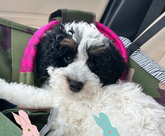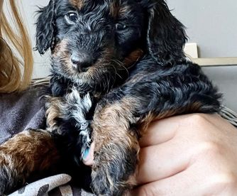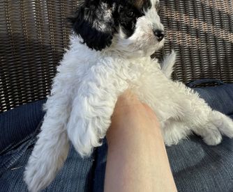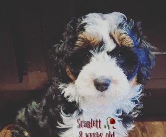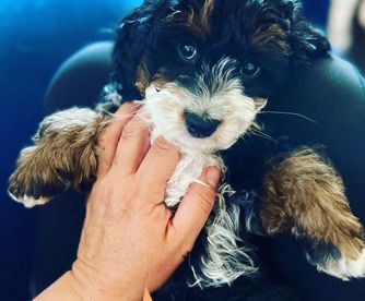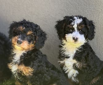 We are a small, family breeder currently with one petite mini bernedoodles available. Our pups are 24/7 supported, loved and trained while they are in our care. We respect our pets as family, until they find their new forever family