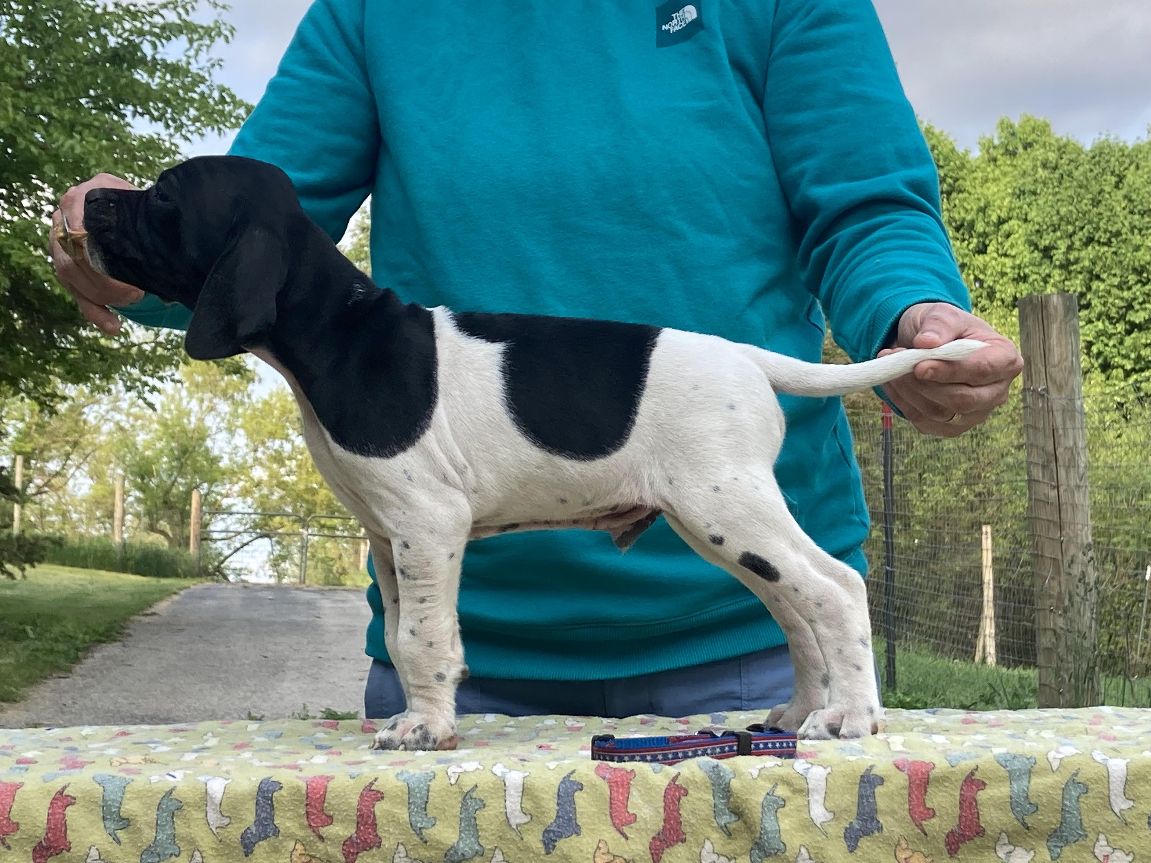 Our breeding program is known for producing beautiful, healthy, dual-purpose (field/show) Pointers who are very well socialized (from growing up on our farm with our children). We incorporated solid colored Pointers (from Scandinavia) in or breeding program in 2010, and have been working hard to maintain color diversity in the breed. We have also been fortunate to add dual-purpose Italian lines into ours, which have made our awesome lines even better.