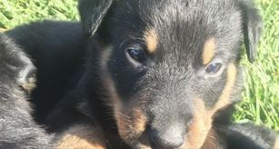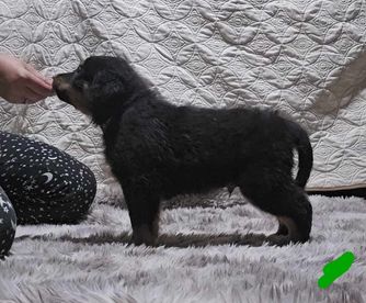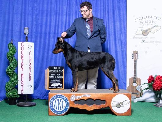 AKC Bronze Grand Champion and a UKC Champion. She is ranked currently in the top 10 for Beaucerons with limited showing. She is fully health tested with normal results.
