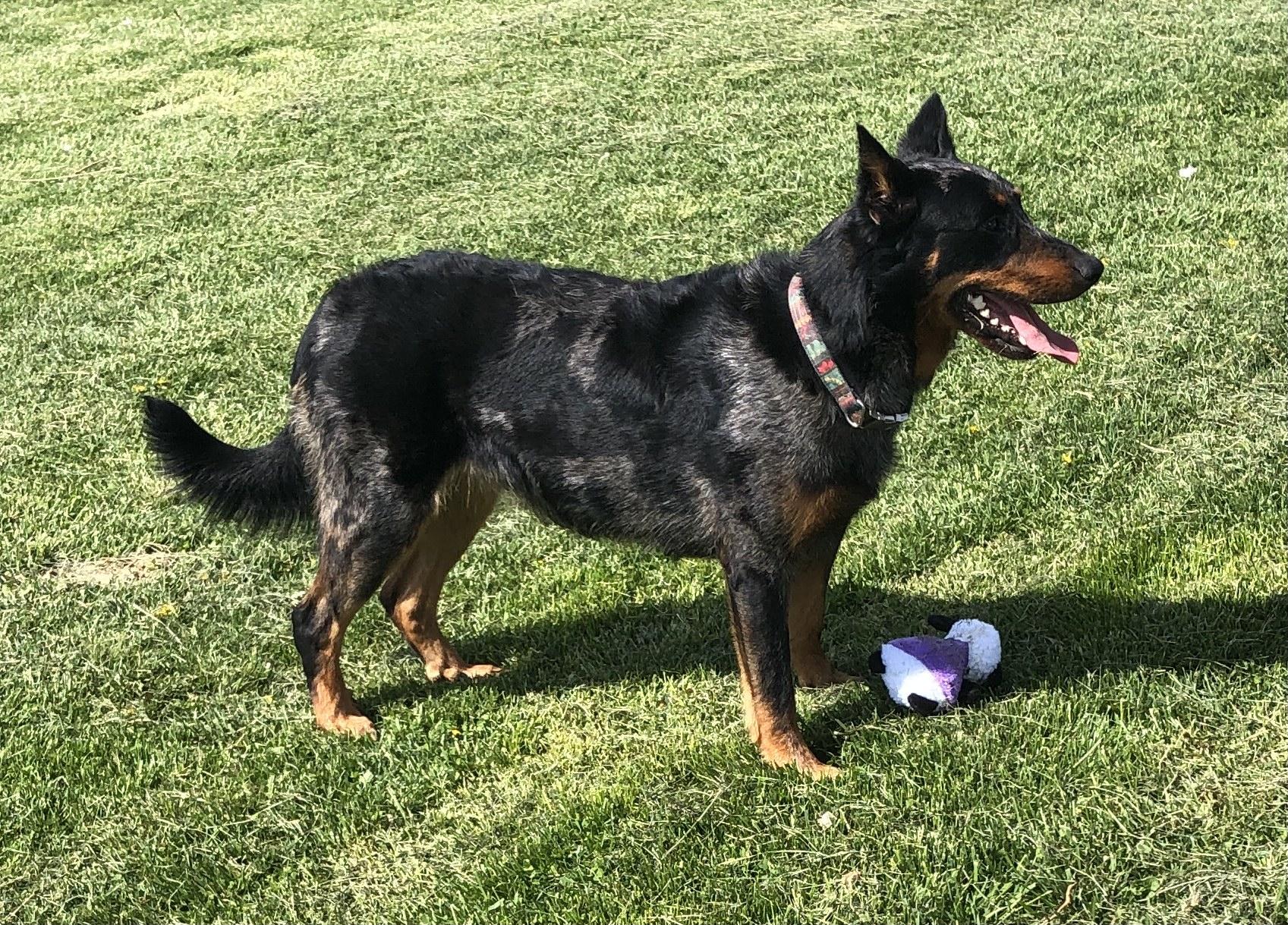 Nietzsche is a female Beauceron about 8 years old. Carefully selected as a great representative of her breed, Susan decided to make her part of their program. Susan has passed Good Dog’s screening process, which involved a review of their breeding practices, environment, and the mental and physical health of their dogs.
