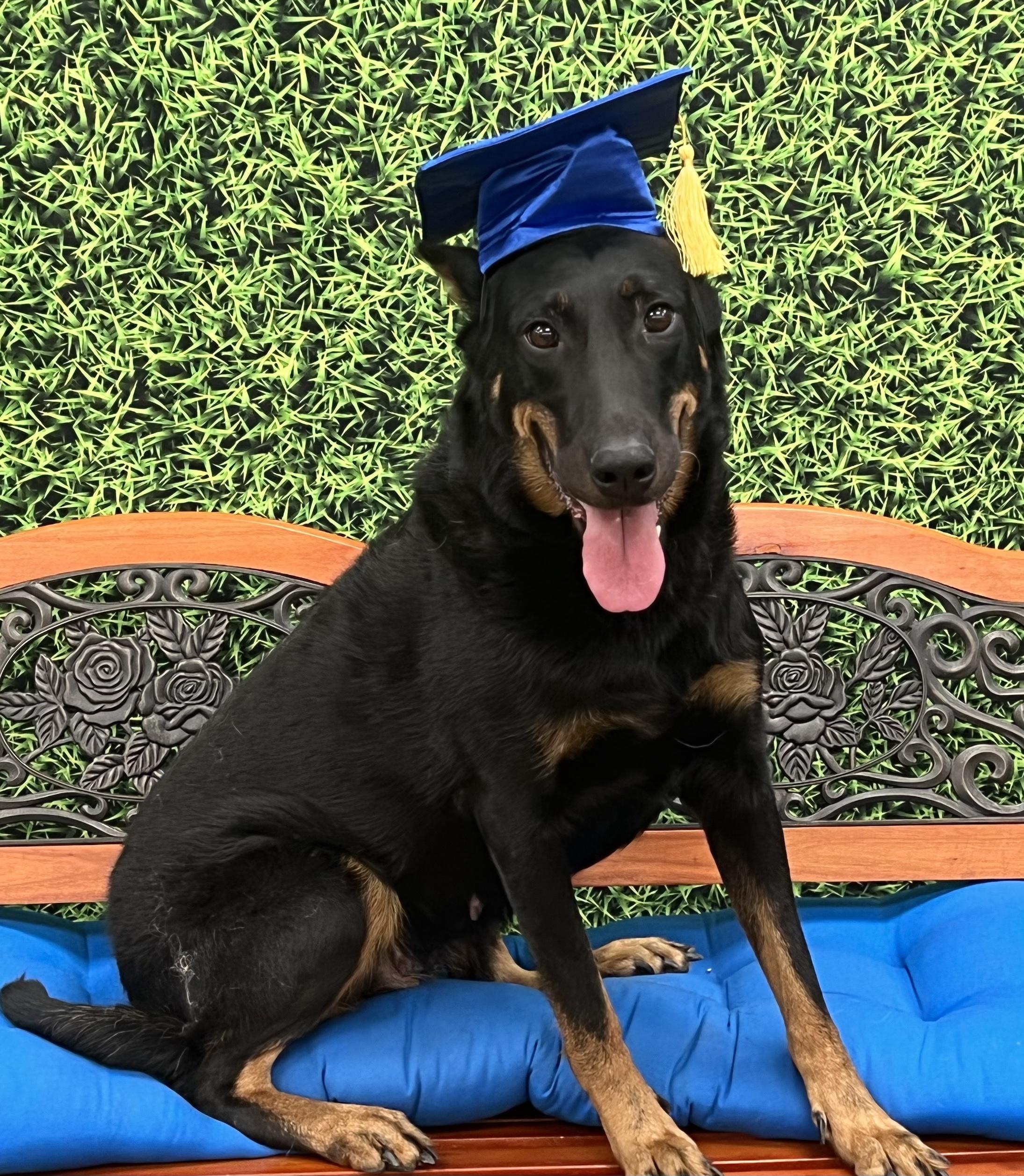 Azzie is a female Beauceron. Carefully selected as a great representative of her breed, Susan decided to make her part of their program. Susan has passed Good Dog’s screening process, which involved a review of their breeding practices, environment, and the mental and physical health of their dogs.
