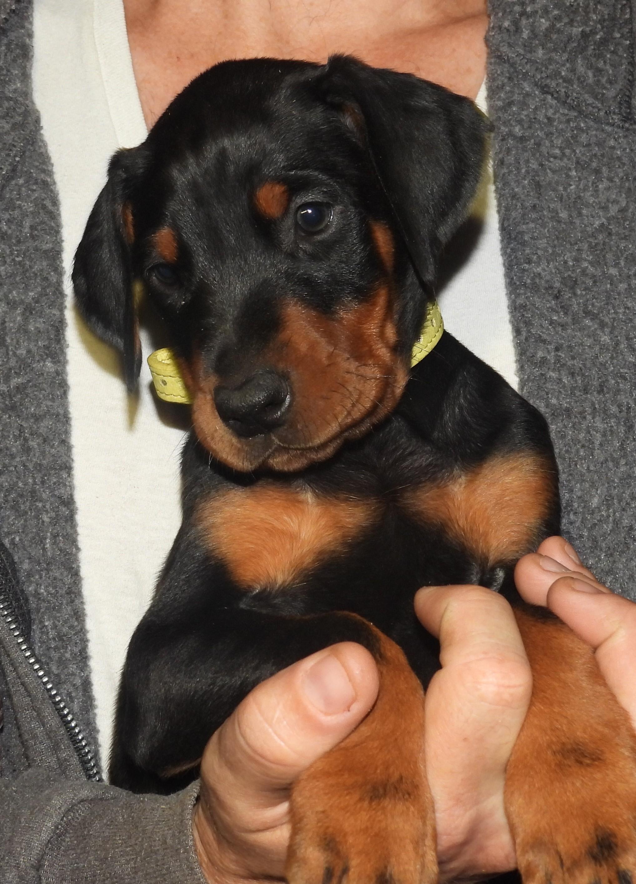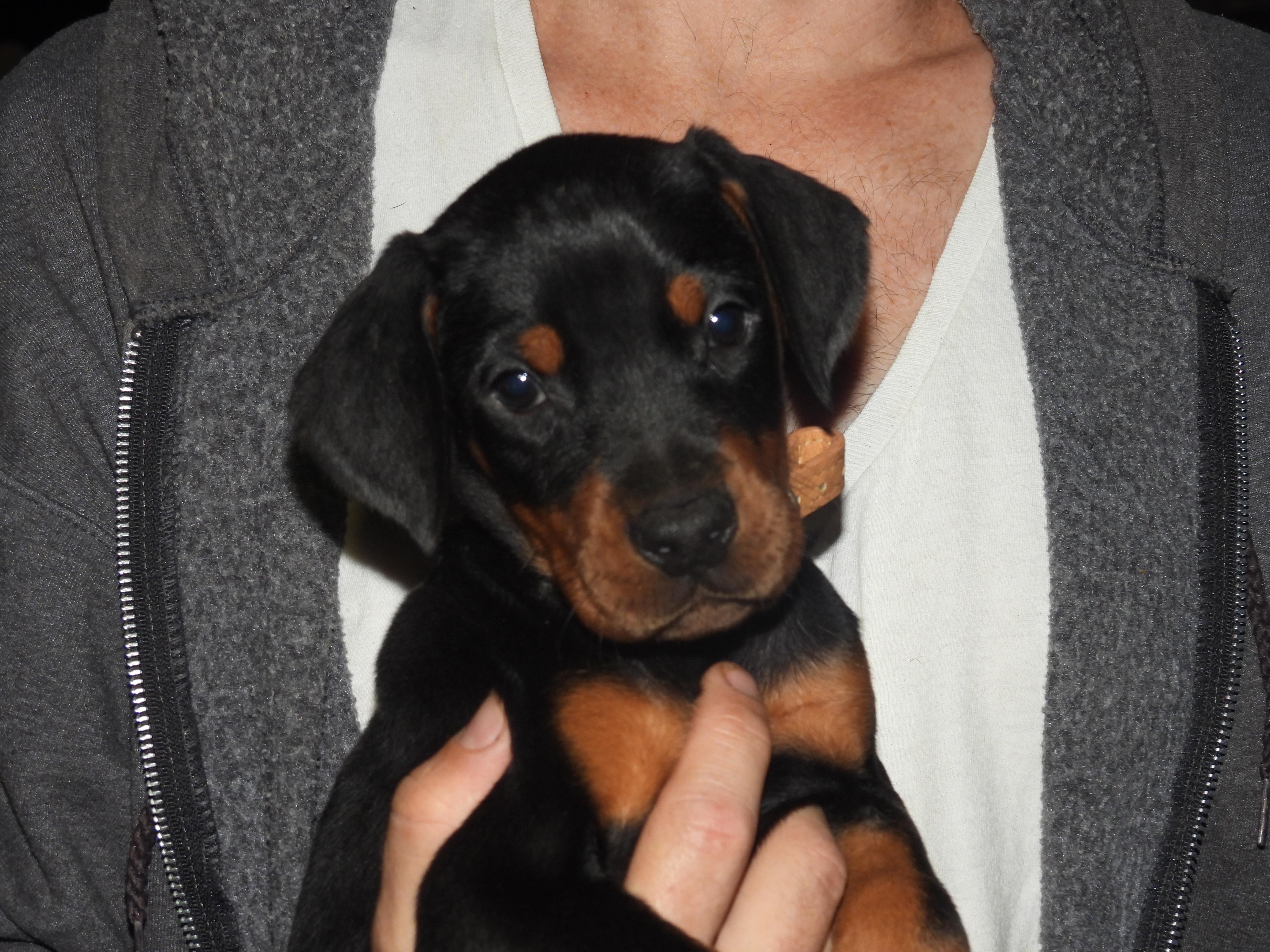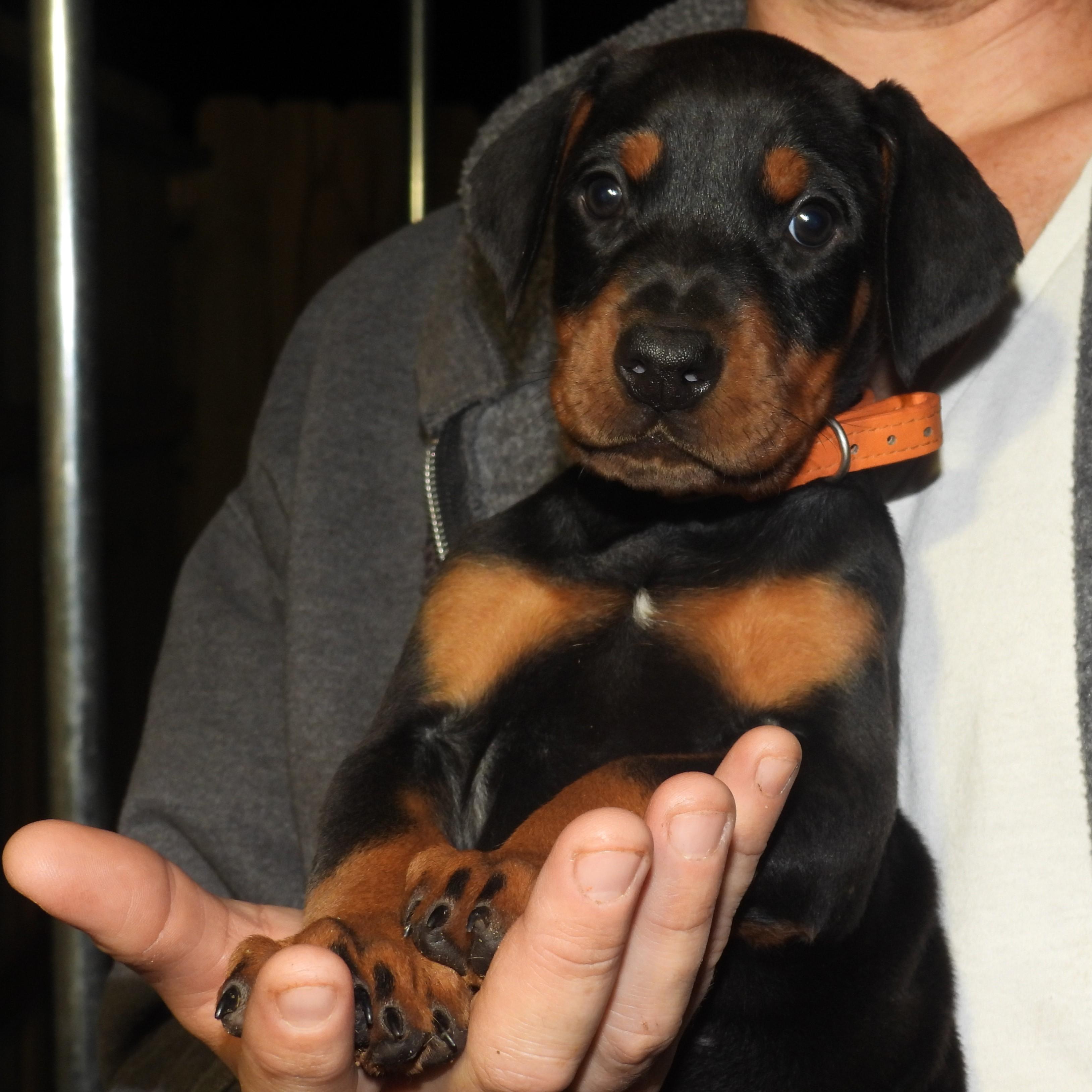Our puppies include black and rust, blue and rust, fawn (isabella) and rust, and red and rust. Colors will vary depending on the parent dogs.