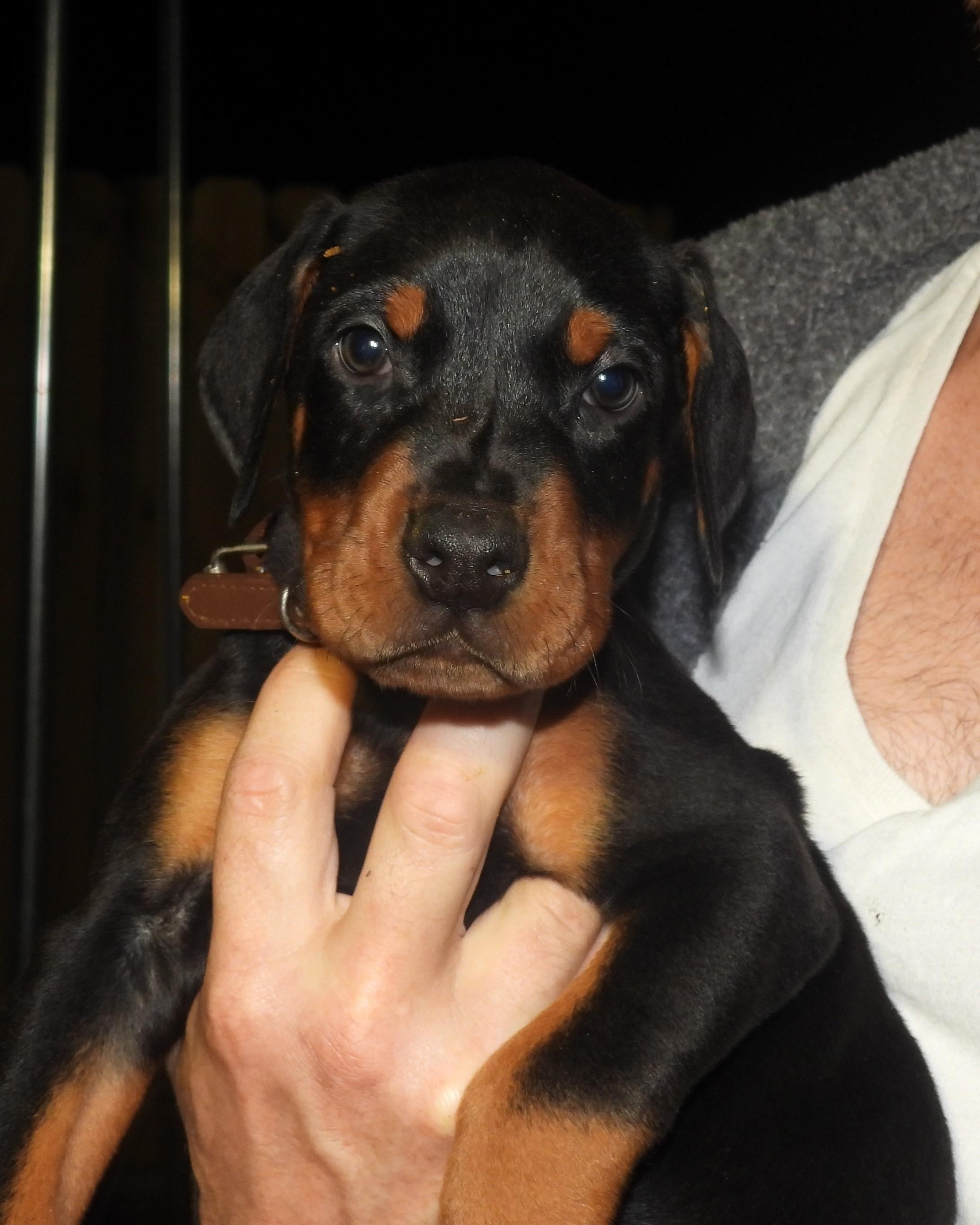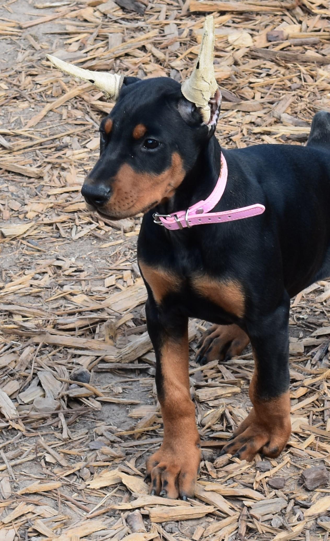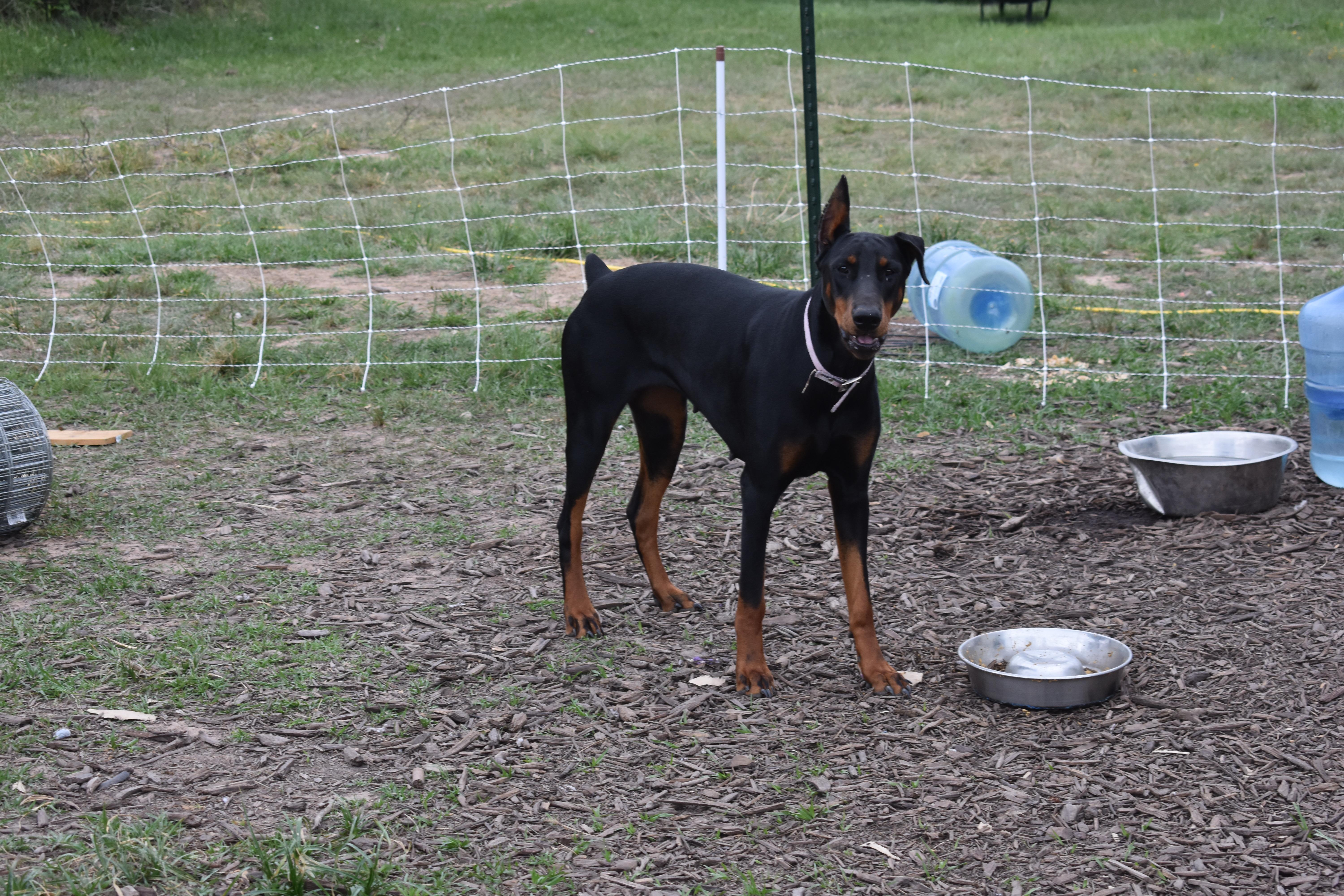 Satin is a female Doberman Pinscher. Carefully selected as a great representative of her breed, Samary decided to make her part of their program. Samary has passed Good Dog’s screening process, which involved a review of their breeding practices, environment, and the mental and physical health of their dogs.