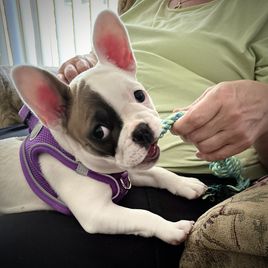 Leah was sooo awesome the whole process of me trying to find a frenchie that fit me and my home perfectly. She’s very knowledgeable and actually cares about the puppies she is homing and I loved that she’s always there whenever I’ve had any question or concern. It’s hard to find an actual breeder who is doing everything the right way and she definitely is! I’m so glad I met Leah and went through her to find my baby!
