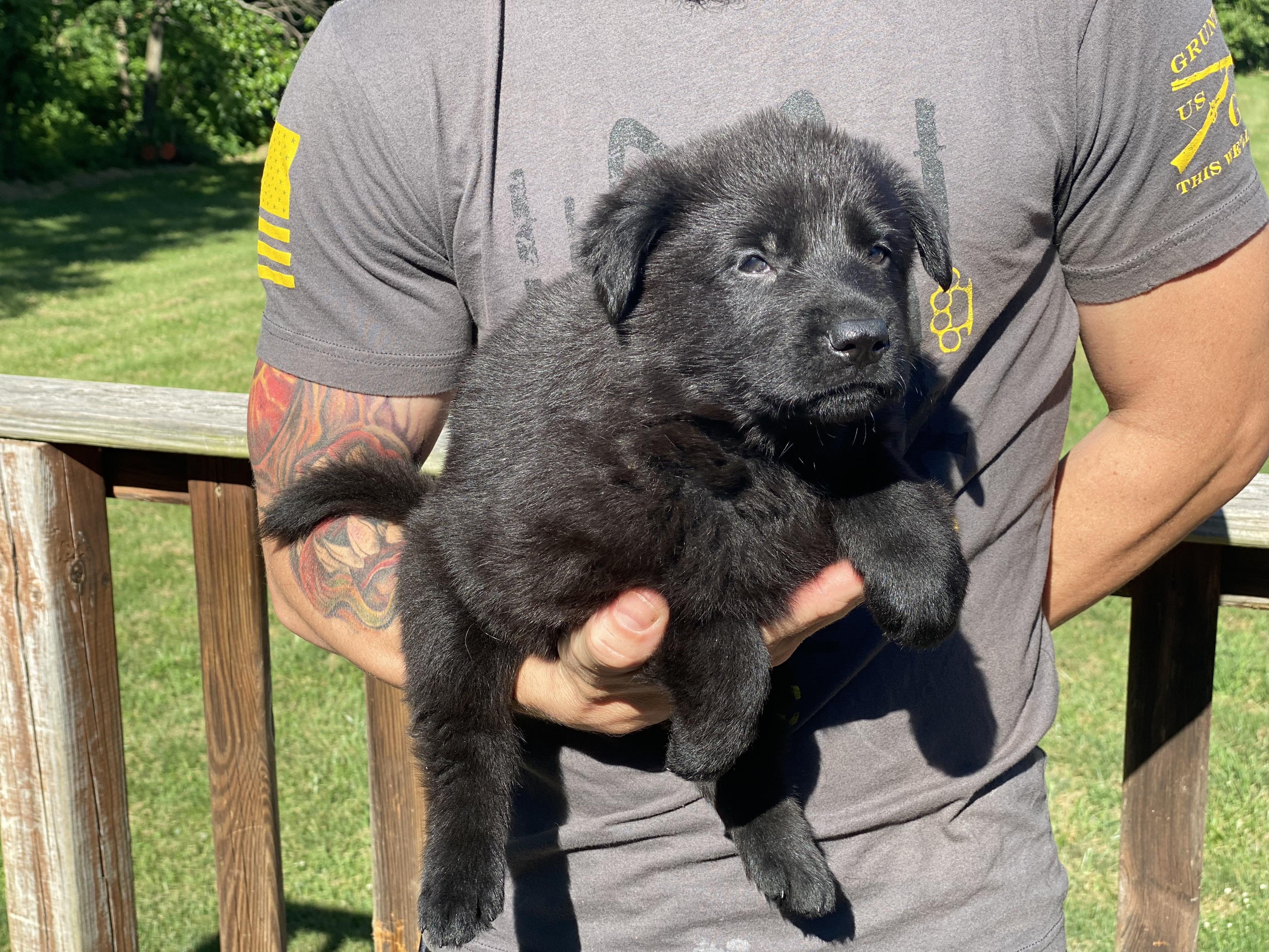 We are down to one available puppy: a gorgeous, dark/black sable female.