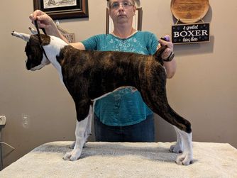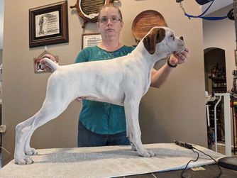 I'm Roxanne B., the breeder behind Bitty's Boxers located in Yulee, FL. Our mission is to improve the breed through selective breeding and ample health testing. We believe that with the collective efforts of other responsible breeders, we can improve the future of the breed.