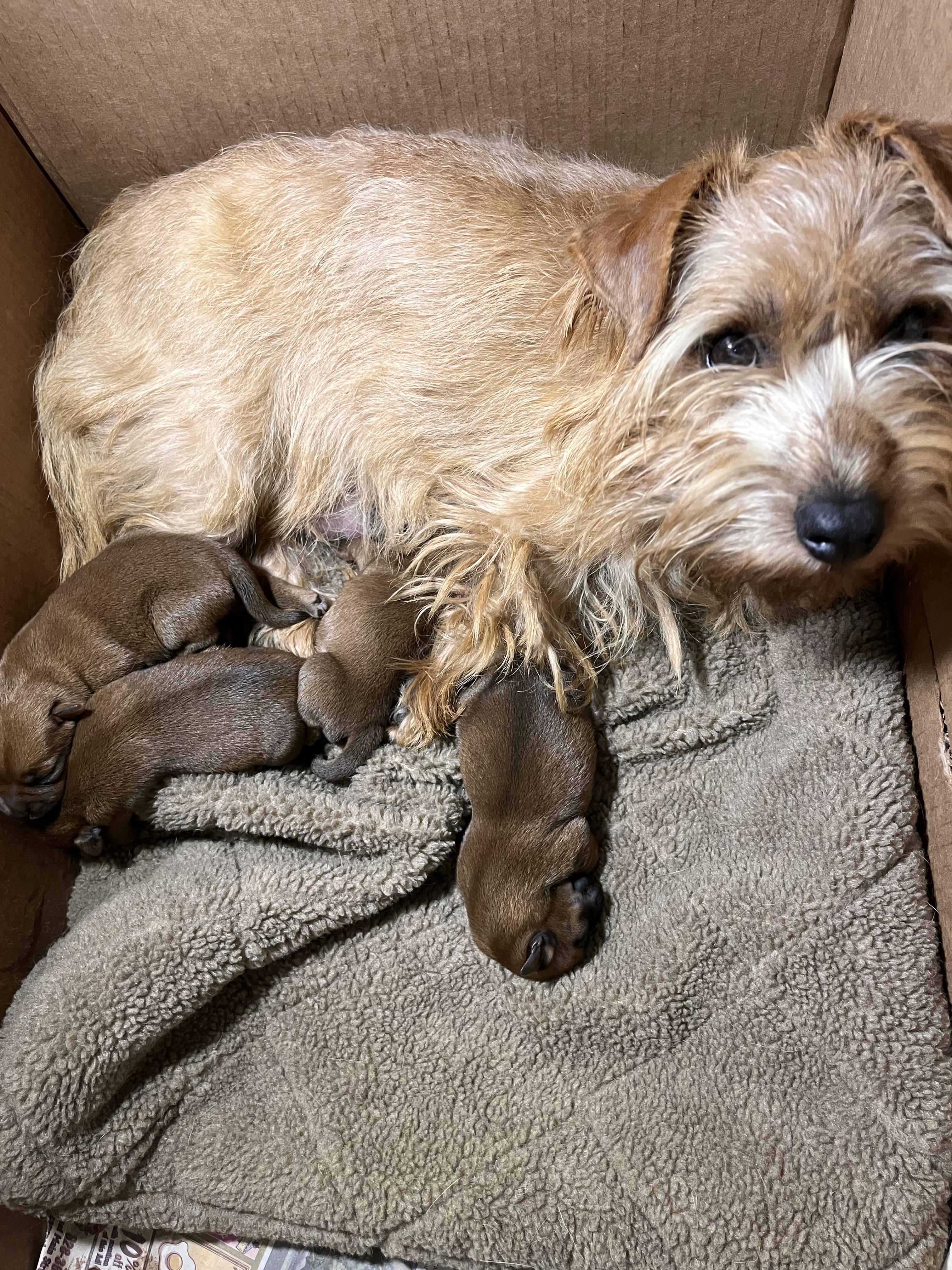 Tater is a female Norfolk Terrier. Carefully selected as a great representative of her breed, Liz decided to make her part of their program. Liz has passed Good Dog’s screening process, which involved a review of their breeding practices, environment, and the mental and physical health of their dogs.