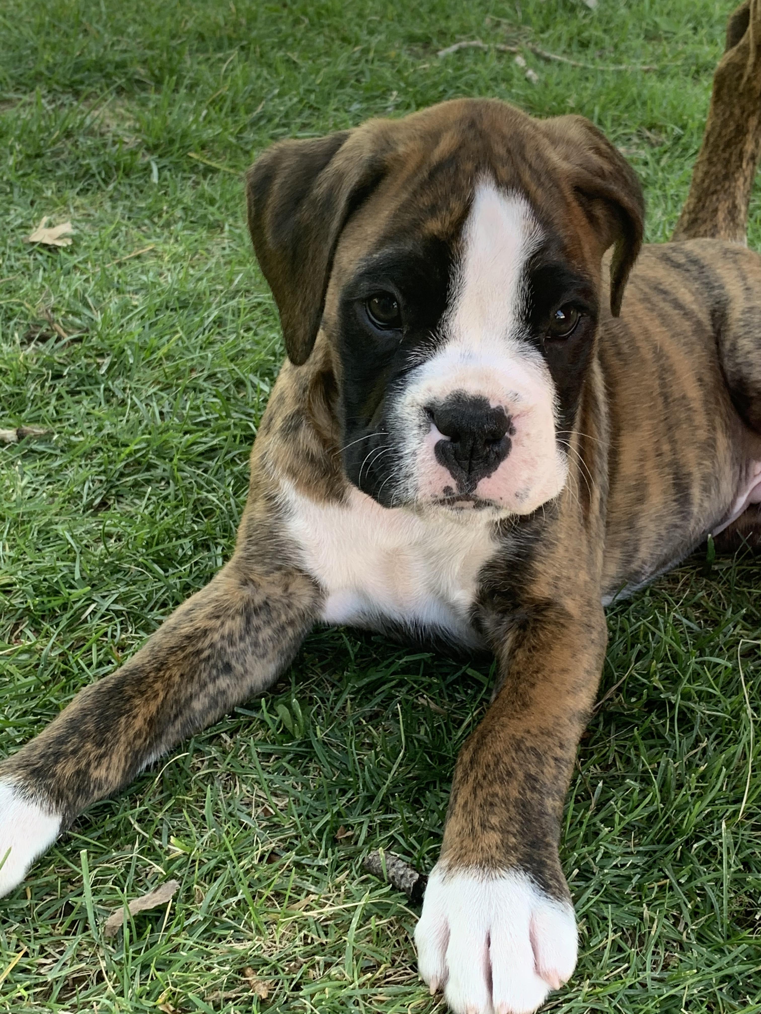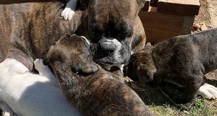 My first Boxer was a male named Gustus. He was one of those special dogs that you love dearly. When he was just over 2 years old he died next to me in bed during the night while we were sleeping. He had not been ill. That was my introduction to Boxer heart problems. I decided to educate myself and breed boxers that had been tested for heart disease. I’m trying to save people the same heart ache I went through and have Boxers that feel great and thrive.