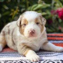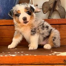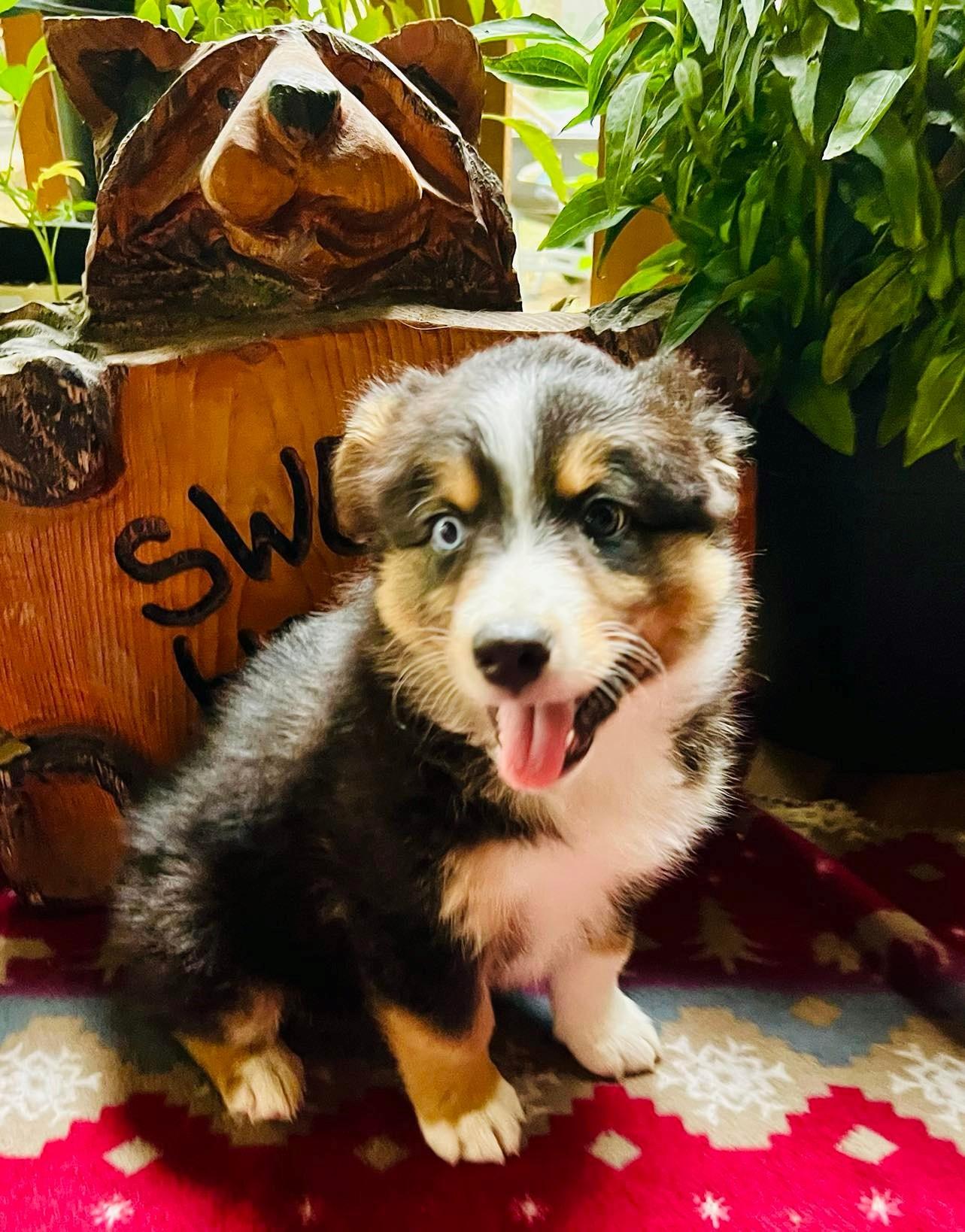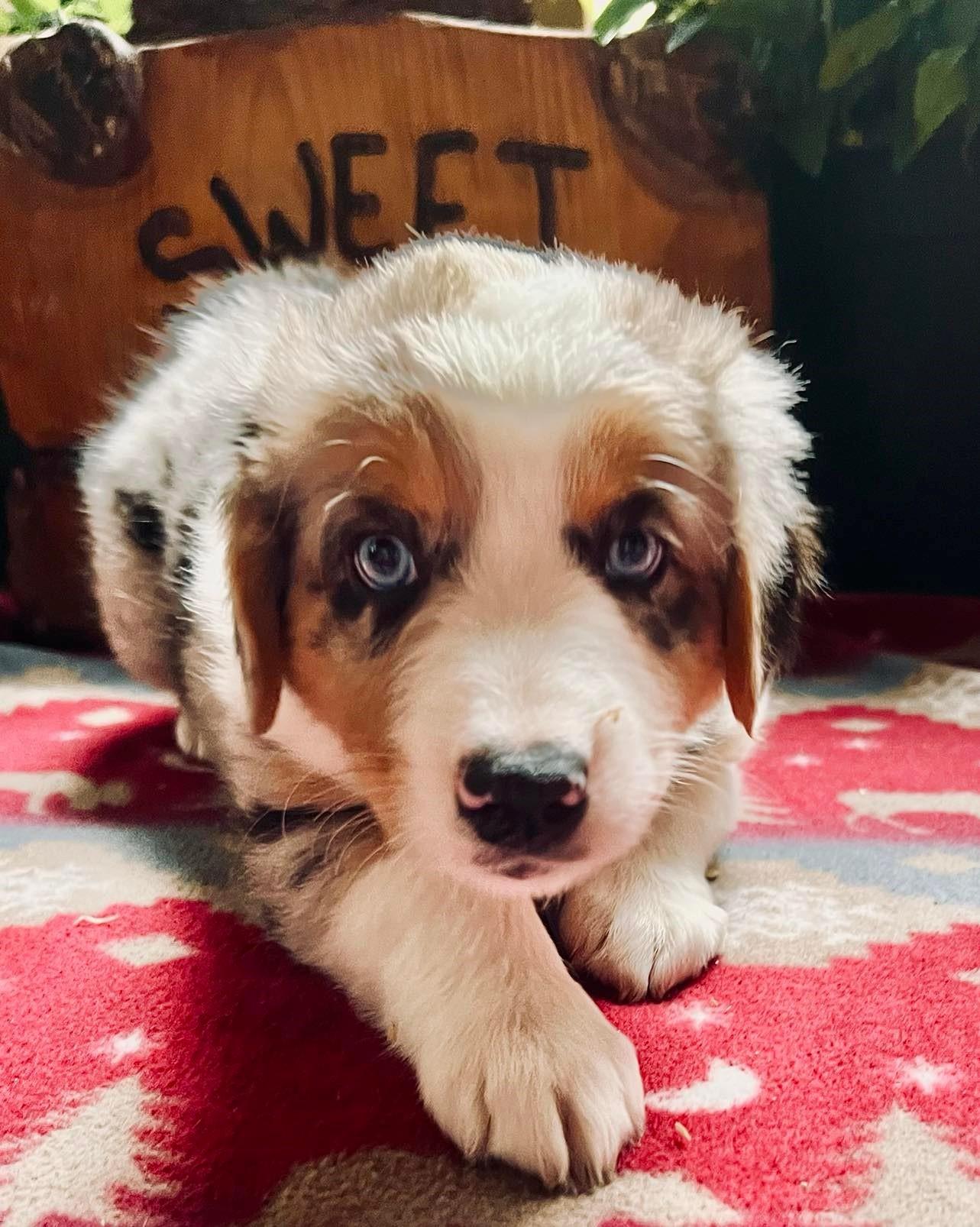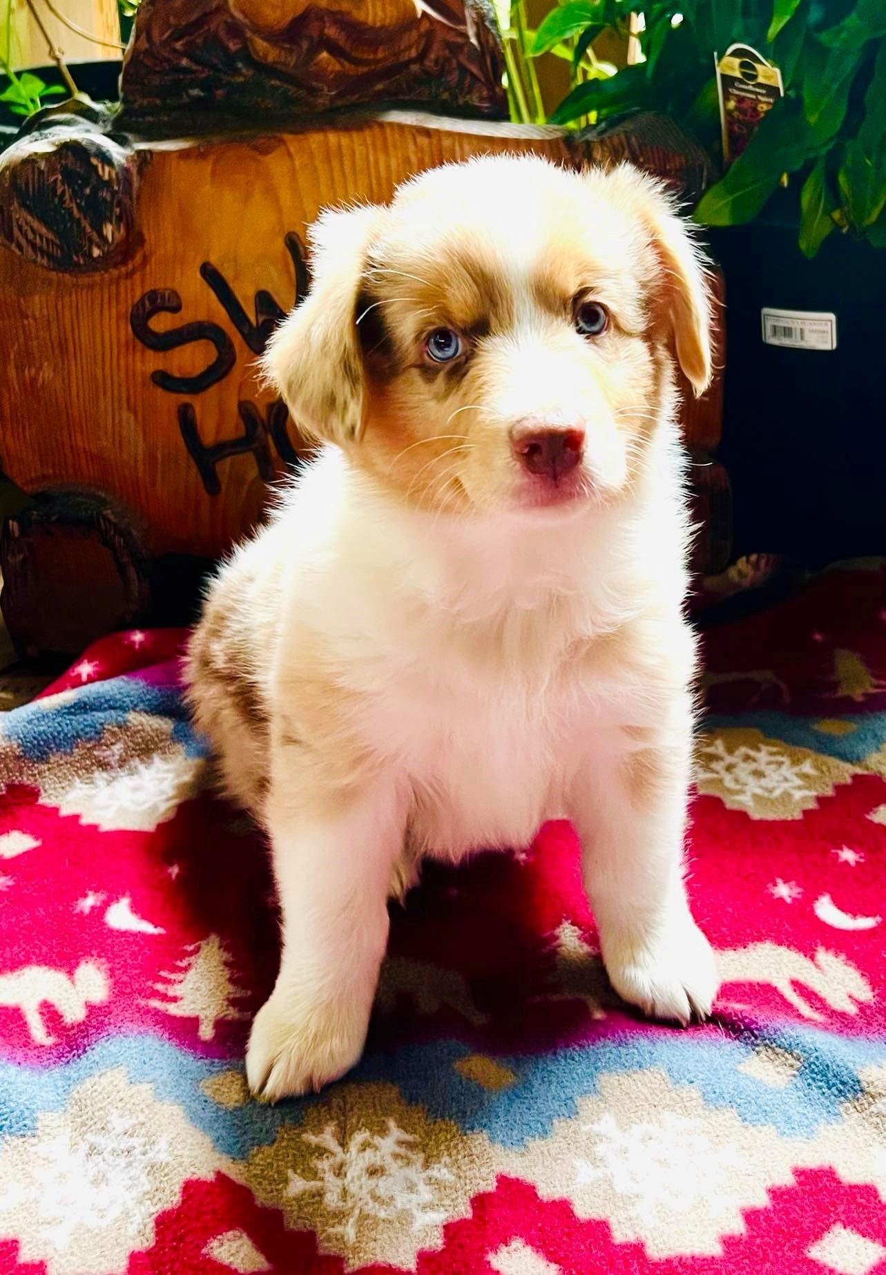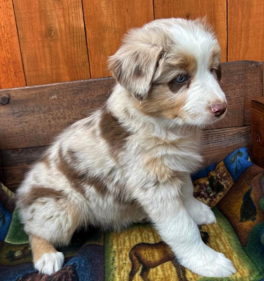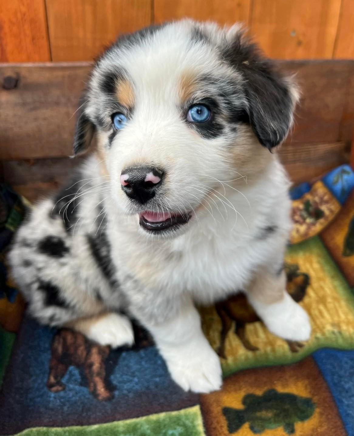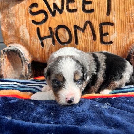 I'm Elzie B., the breeder behind Black Canyon Corral Aussies located in Boise, ID. Our site; Blackcanyoncorralaussies has videos, additional pictures, photos of the parents, and many testimonials. Please come and check it out! By the time you pick up your puppy, we will have spent countless hours with them. We work on getting them to come when called (using the name you have chosen), begin potty training, basic commands, crate training, and hold and interact with them daily so they are well used to being handled. We have received positive feedback from buyers about the ease of potty training and commands. We are breeding for personality. form, and of course color. All of our dogs have very sweet personalities. Our dogs are wonderful with the grandkids, one of our dogs even slides down the slide!