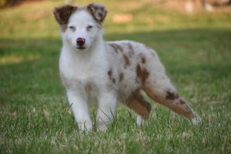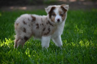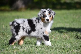 Our puppies include black, red merle, blue merle, and red. Colors will vary depending on the parent dogs.