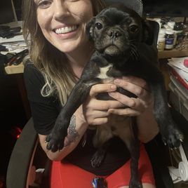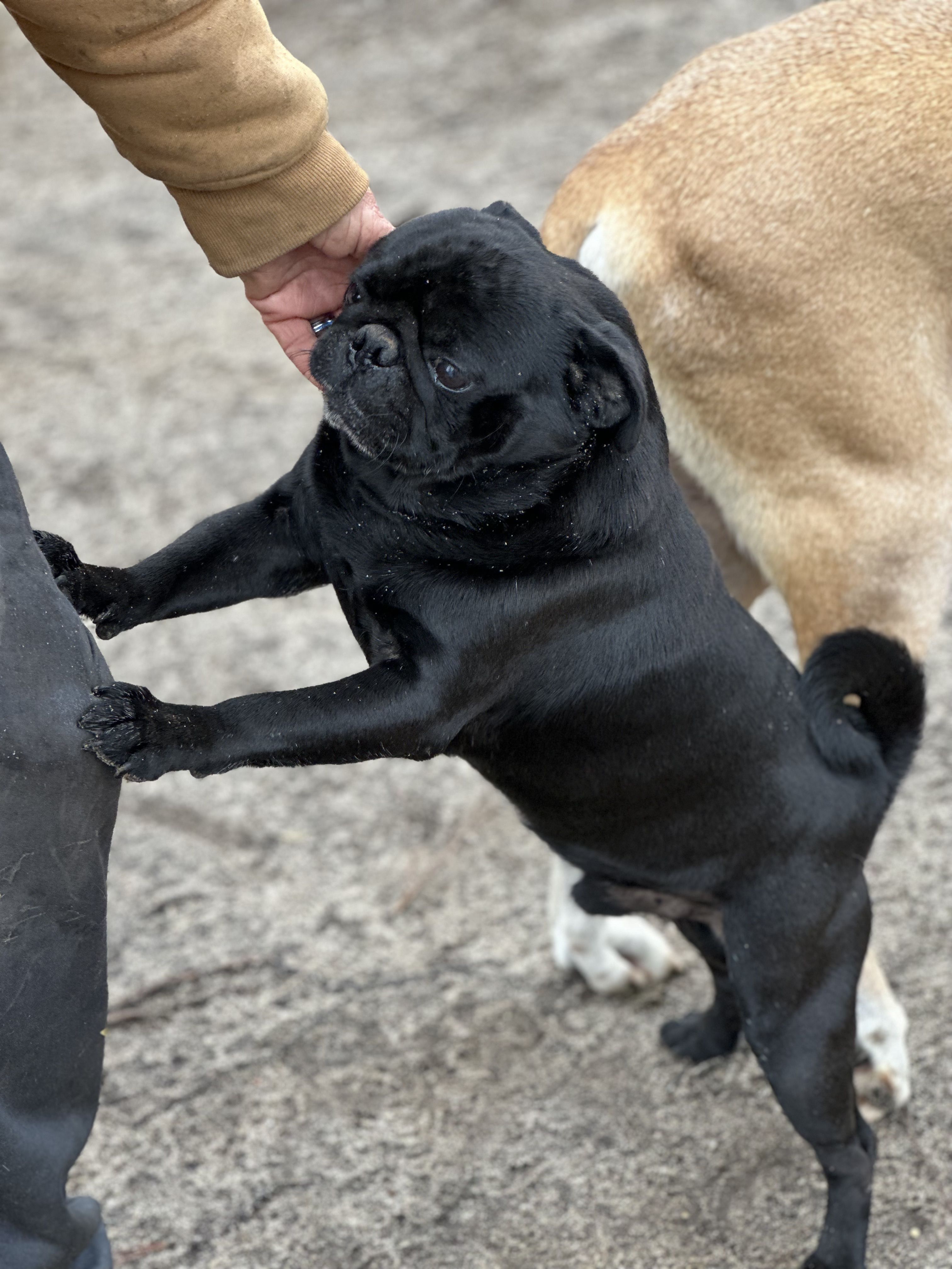DJ is a male Pug. Carefully selected as a great representative of his breed, Sarah decided to make him part of their program. Sarah has passed Good Dog’s screening process, which involved a review of their breeding practices, environment, and the mental and physical health of their dogs.