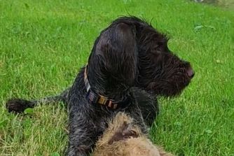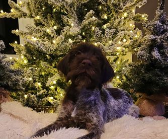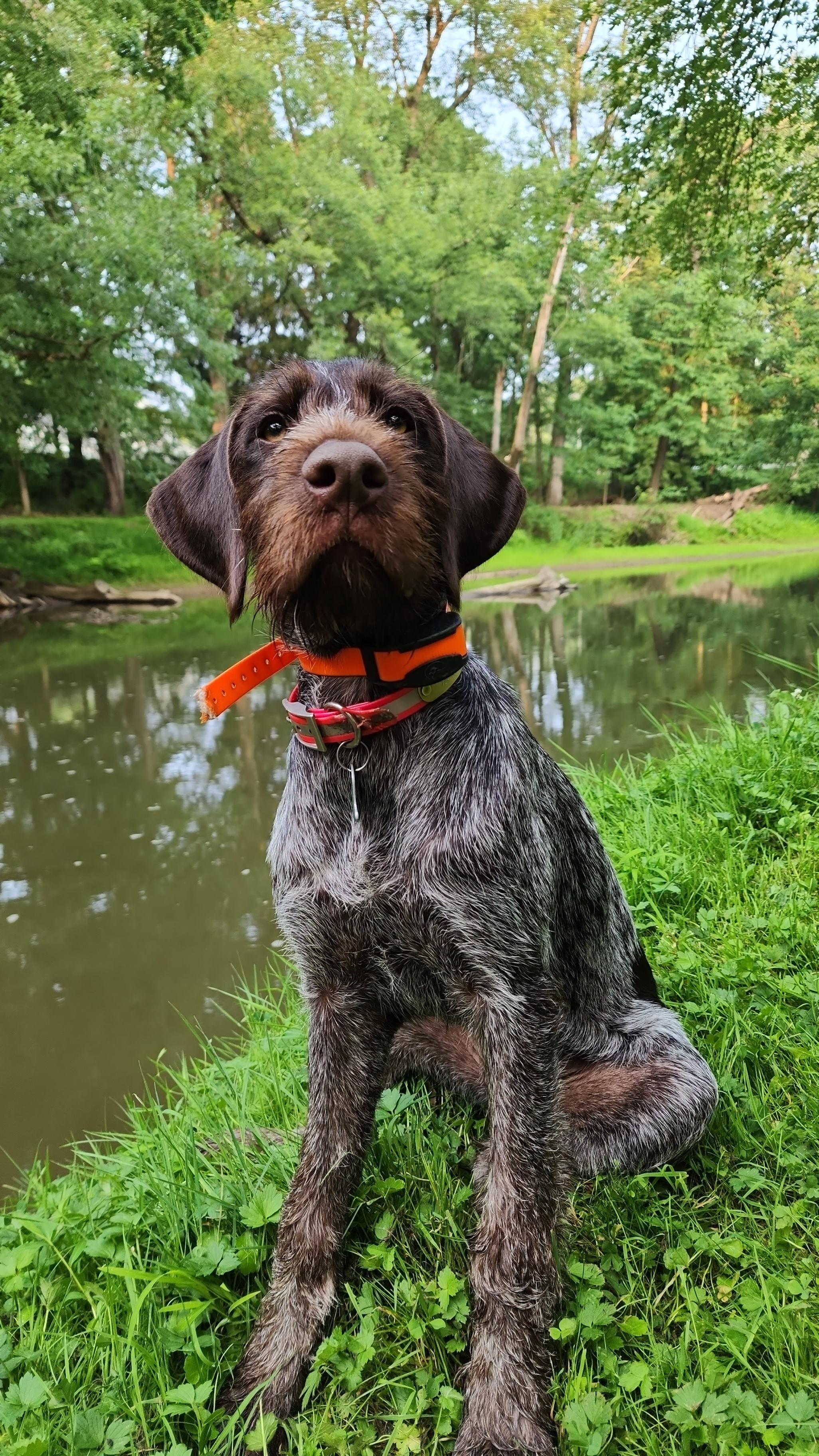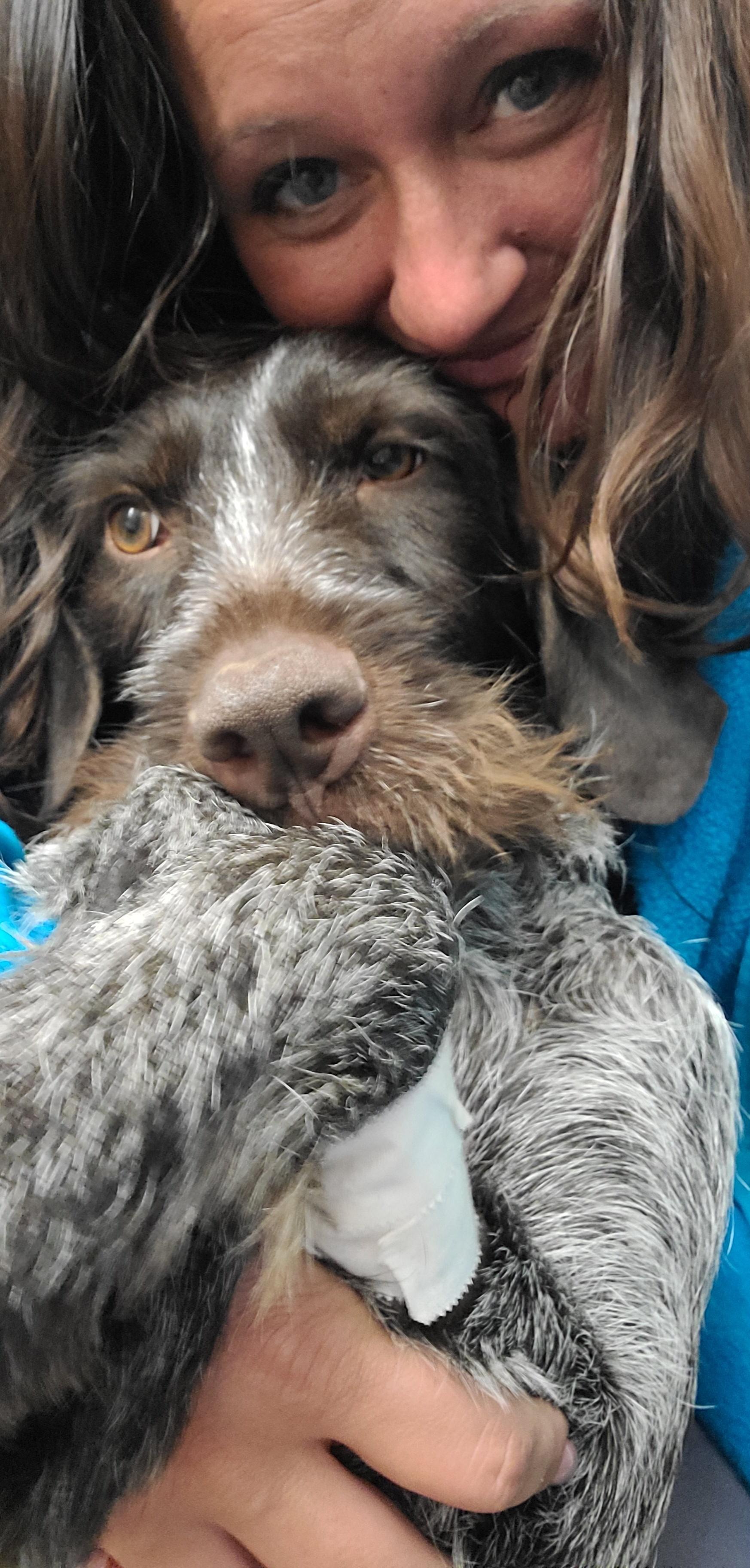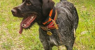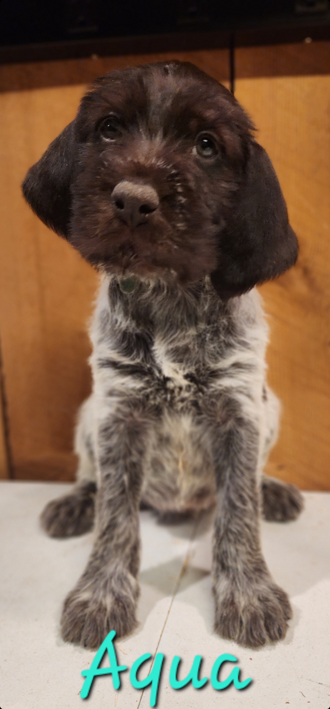 IKE is a male German Wirehaired Pointer. Carefully selected as a great representative of his breed, Amanda decided to make him part of their program. Amanda has passed Good Dog’s screening process, which involved a review of their breeding practices, environment, and the mental and physical health of their dogs.