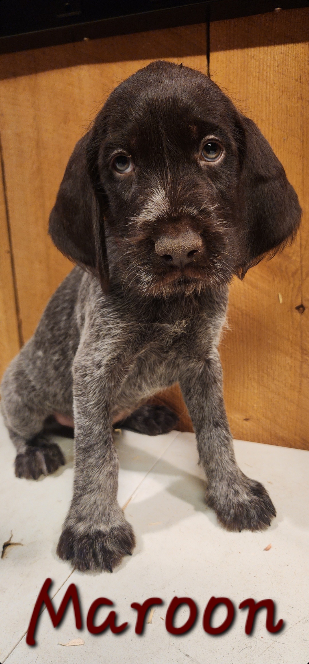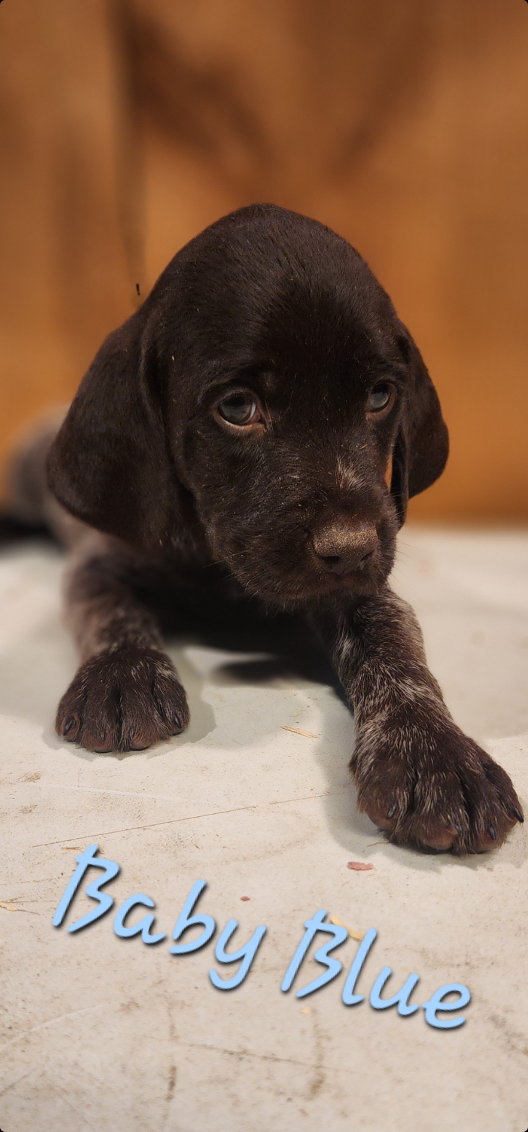 Our puppies are liver and white. Colors will vary depending on the parent dogs.