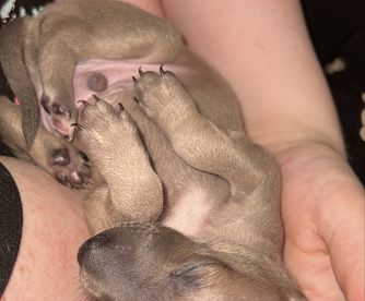 Our puppies include seal, blue fawn, fawn, blue, and black. Colors will vary depending on the parent dogs.