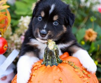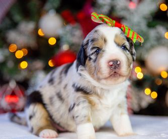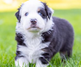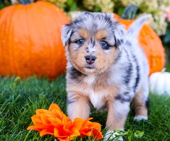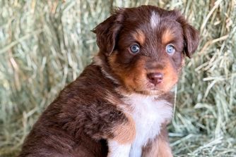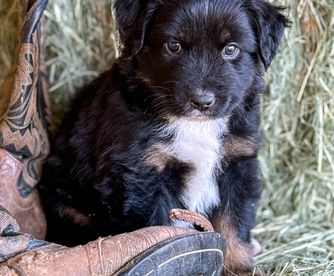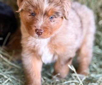 Our Miniature Australian Shepherd puppies include red & white, black & white, blue merle, black tri, red tri, and red merle. Australian Shepherd puppies include black, red merle, blue merle, black tri-color, and red tri-color. Colors will vary depending on the parent dogs.