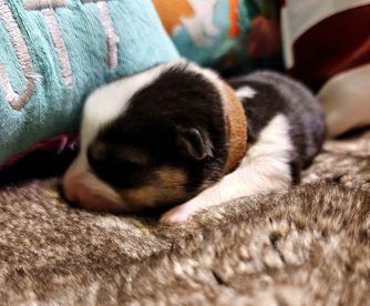 Dolly is an excellent mother. She free whelped 9 puppies. She is from proven working corgis who had limited show records. (2020) A sibling sister is dock diving and competing at dock diving. She is a beautiful girl.