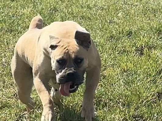 Tug is a male Boerboel. Carefully selected as a great representative of his breed, Shelby decided to make him part of their program. Shelby has passed Good Dog’s screening process, which involved a review of their breeding practices, environment, and the mental and physical health of their dogs.