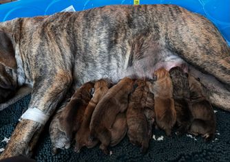 Our puppies include cream, tawny, brindle, red, reddish brown, fawn, and brown. Colors will vary depending on the parent dogs.