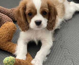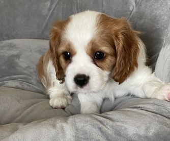 Our puppies are blenheim. Colors will vary depending on the parent dogs.